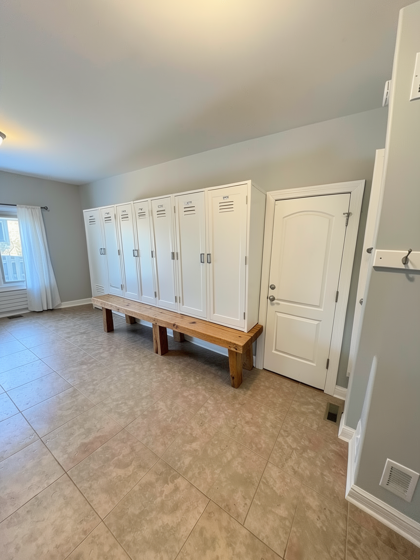 ajoute de l clairage sous les meubles haut et une ambiance lumi re de journ e ajoute une table manger rectangulaire moderne dans le fond gauche de l image avec de la d coration dessus