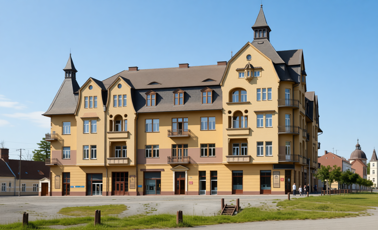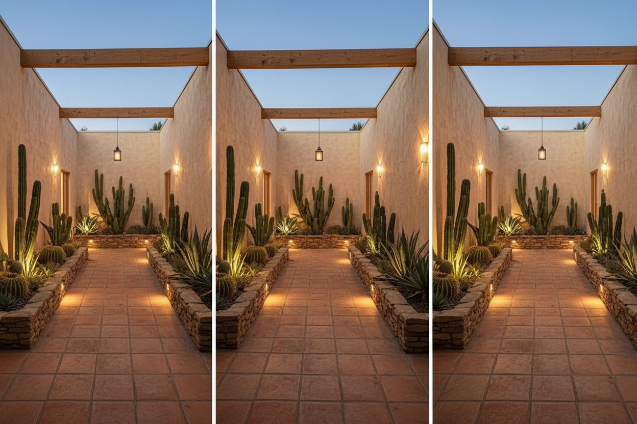 a manicured lawn layered flower beds low maintenance shrubs native plants stone pathway leading to the entrance