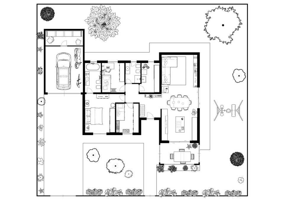 convert this floor plan into a architectural isometric 3d view of a full house show the space from an elevated angle with furniture walls and details visible use the same furniture as shows on the plan do not change the orientation of the floorplan
