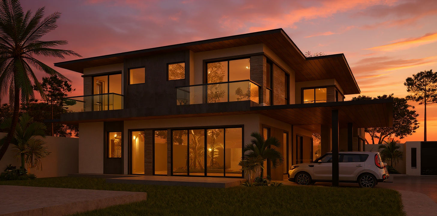 exterior shot the weather is just before the storm but sun is still shining water in the pool is crystal clear but with yellow tinge