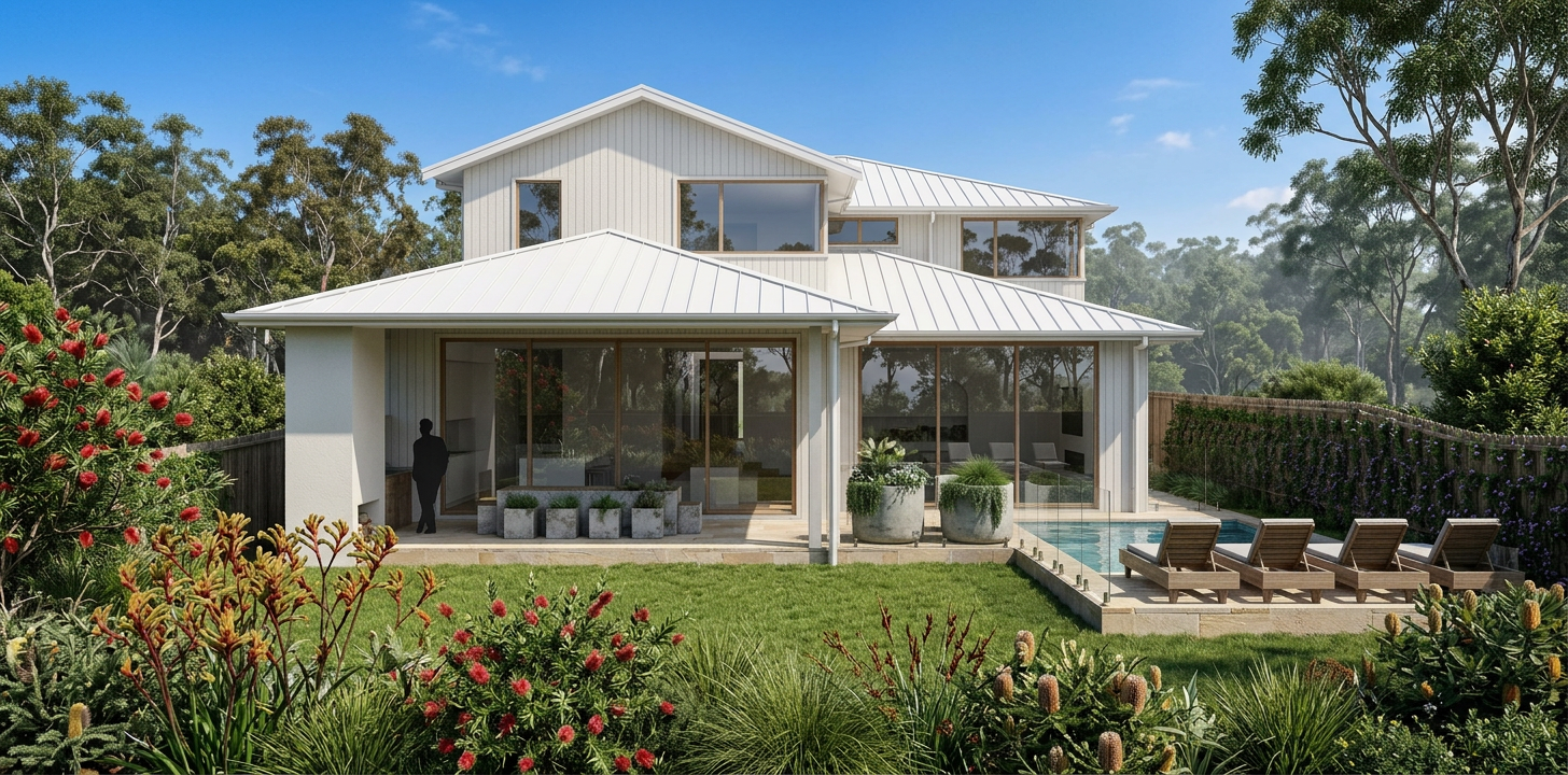 make the wooden screen on the upper story slide to open to the right side make it twilight evening hour in the sky with lights on in the house glowing
