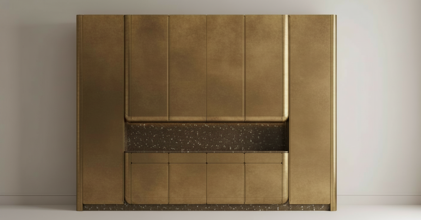 watercolour architectural floor plan top down view warm neutral palette soft shadows modern furniture layout clean black linework interior designer presentation aesthetic minimal but elegant textured materials professional design board style keep all rooms that are empty empty gold black brown pallete
