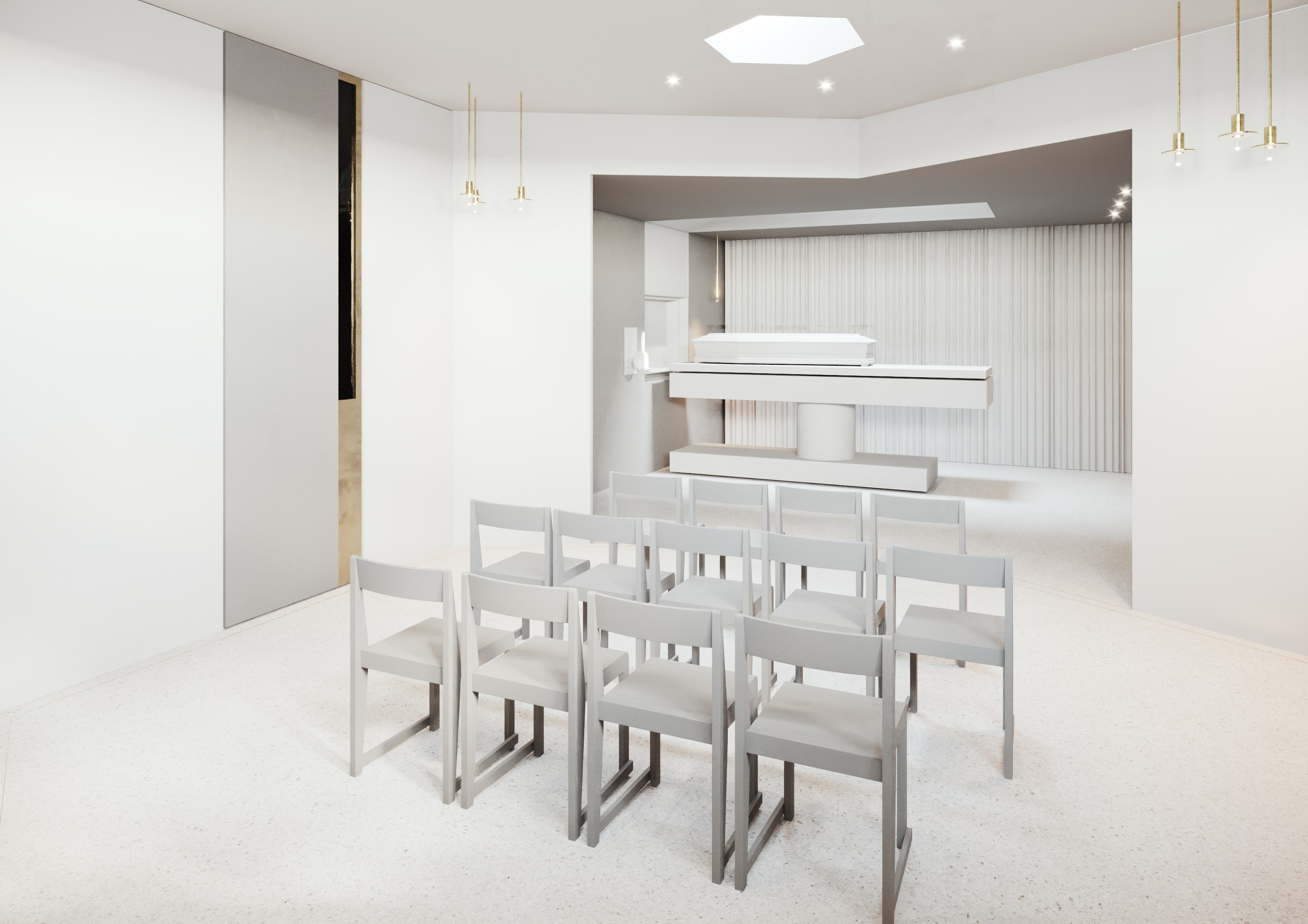 image d une chapelle exagonale permettant une famille d assister la cr mation d un d fun il faut rendre angles rentrants de la chapelle exagonale plus douces avec des arrondis de 20cm de rayon environ