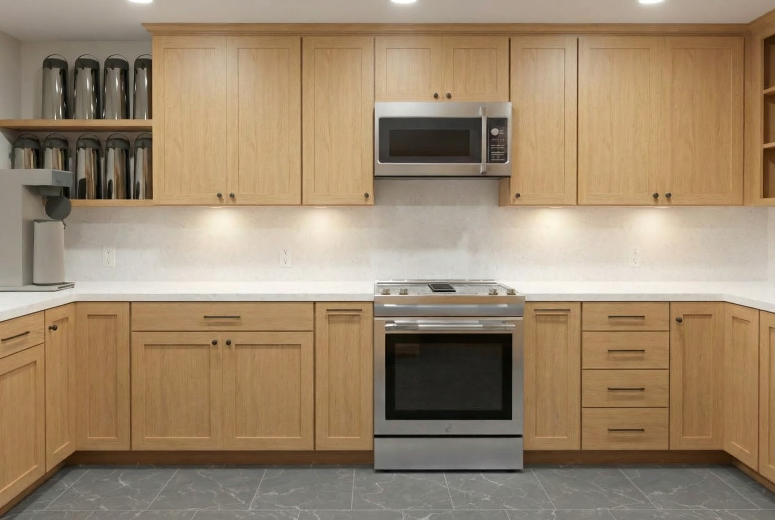 white oak floor white oak cabinets with brass hardware carrara marble countertop