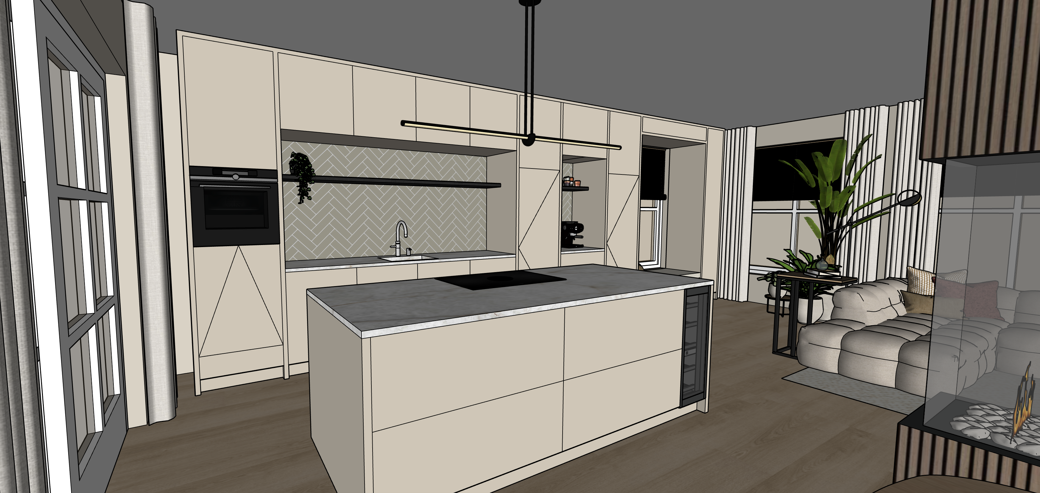 can you make this photorealistic and please leave the materials as in the image and don t add anything to them it is light outside but please turn on the lights inside