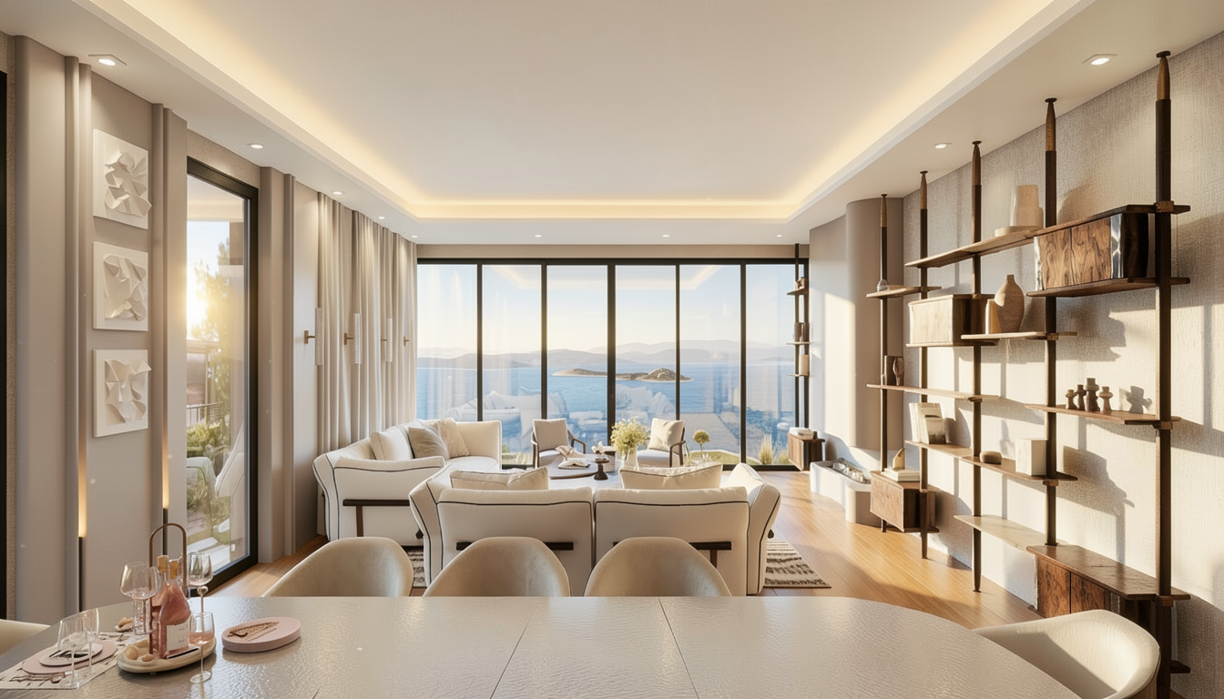 make this 3d modern interior with pastel beige colors