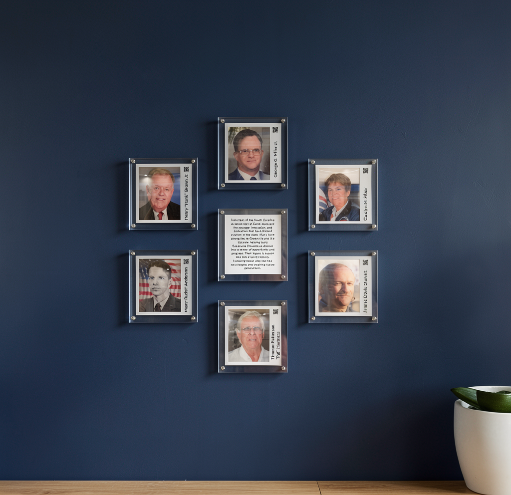 acrylic album like frames clear with silver standoffs keep navy wall no plants