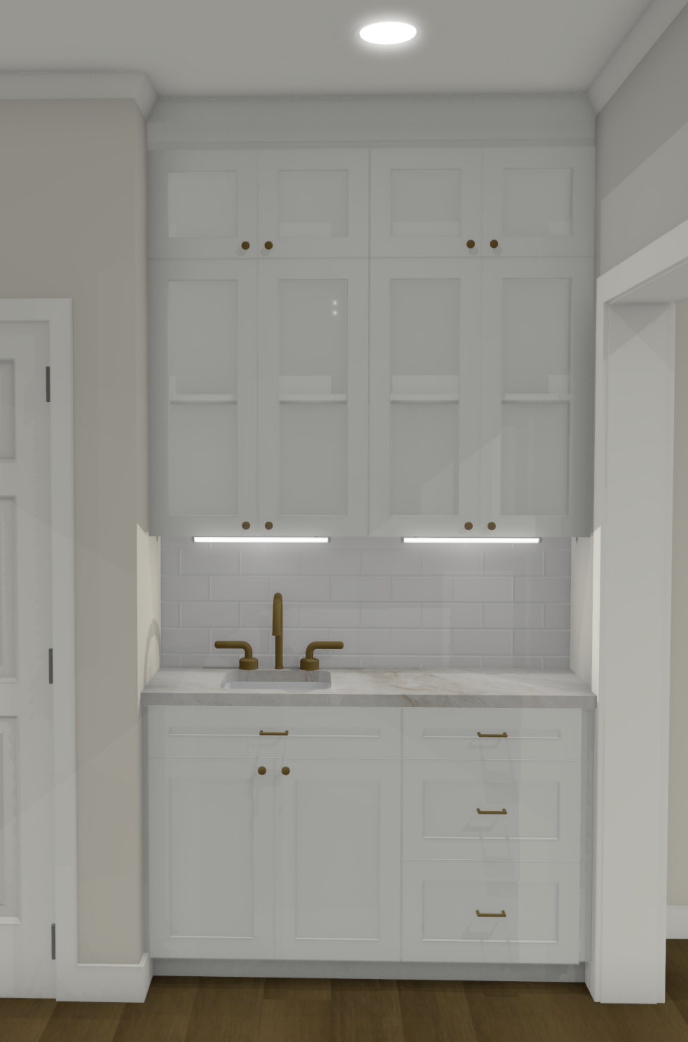 make this image well lit brass fixtures