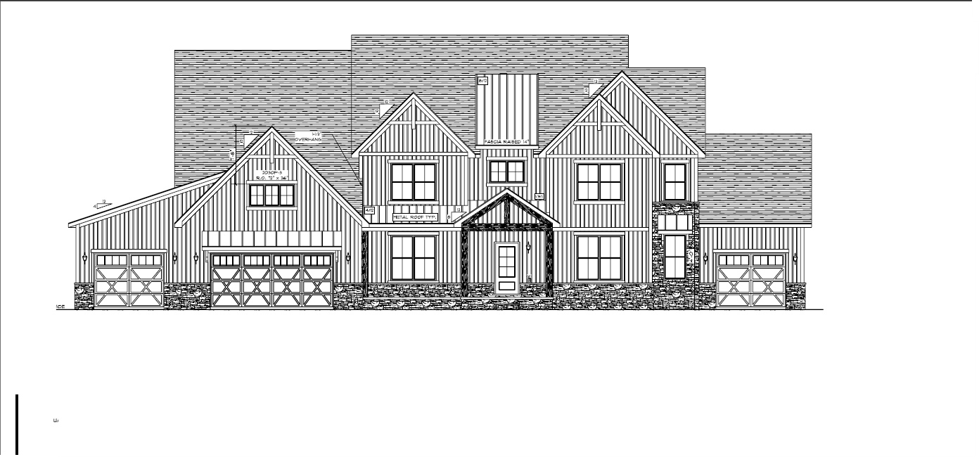 make as photorealistic as possible while keeping textures the same as selection professional landscaping in a lightly wooded scene with good lighting white siding black shingle roof black windows white garage door to match plan black front door