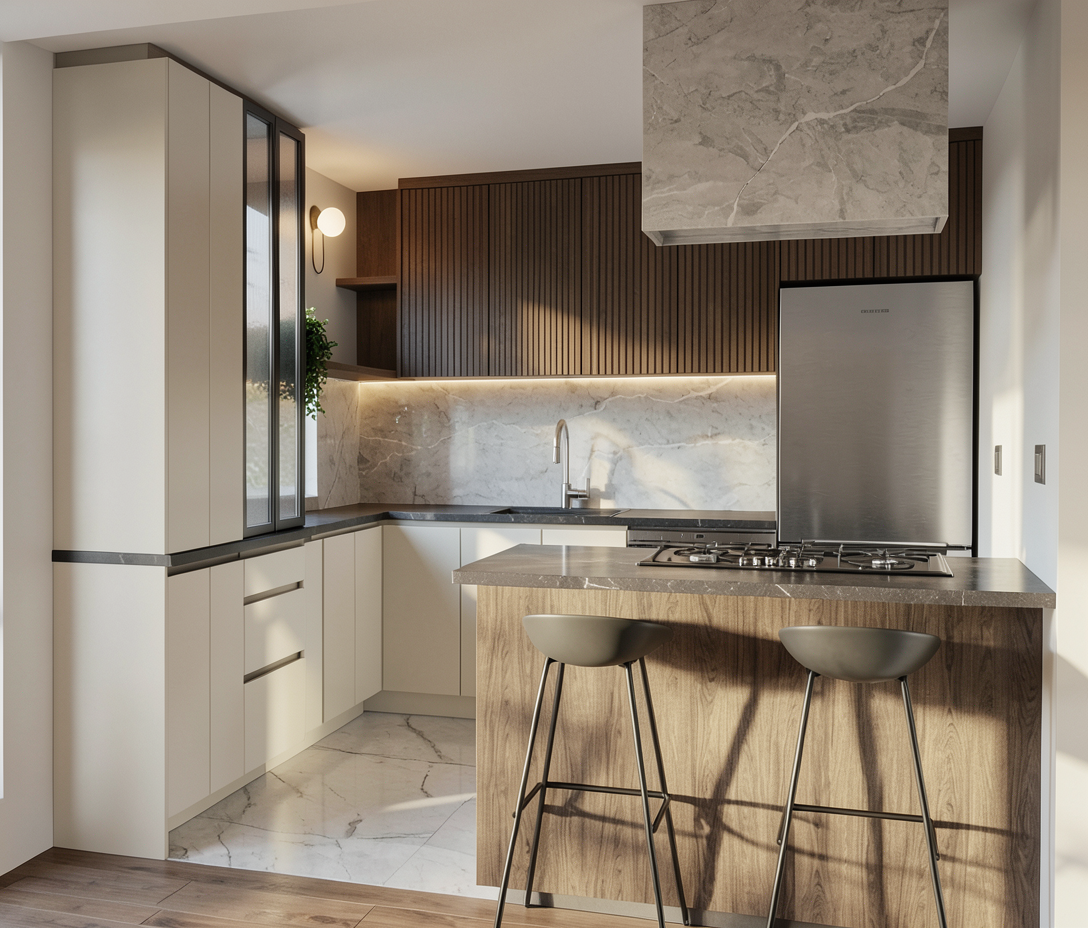 exactly like picture for the cabinets back splash and hood in light beige concrete texture