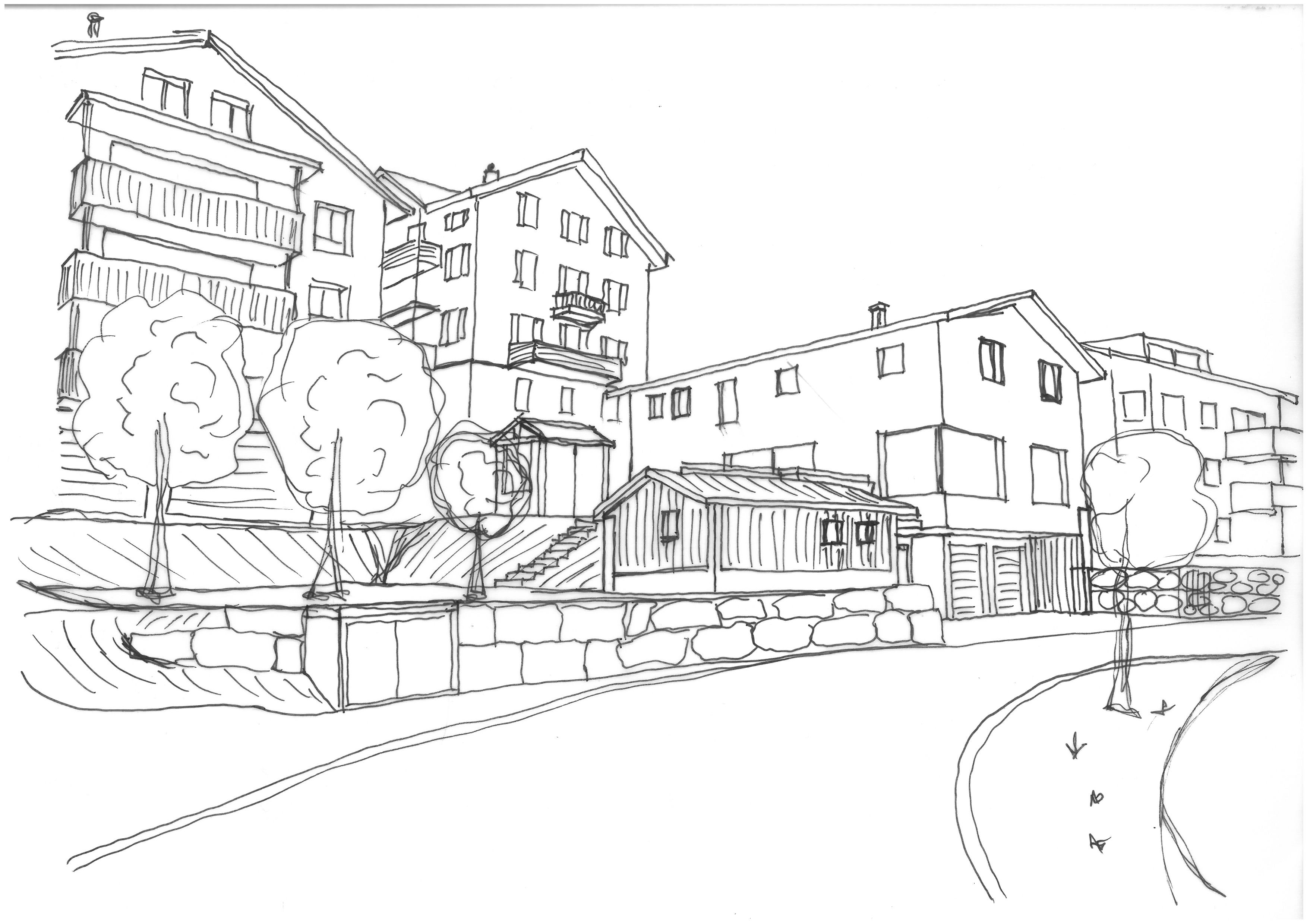 sketch turned into a realistic render village setting