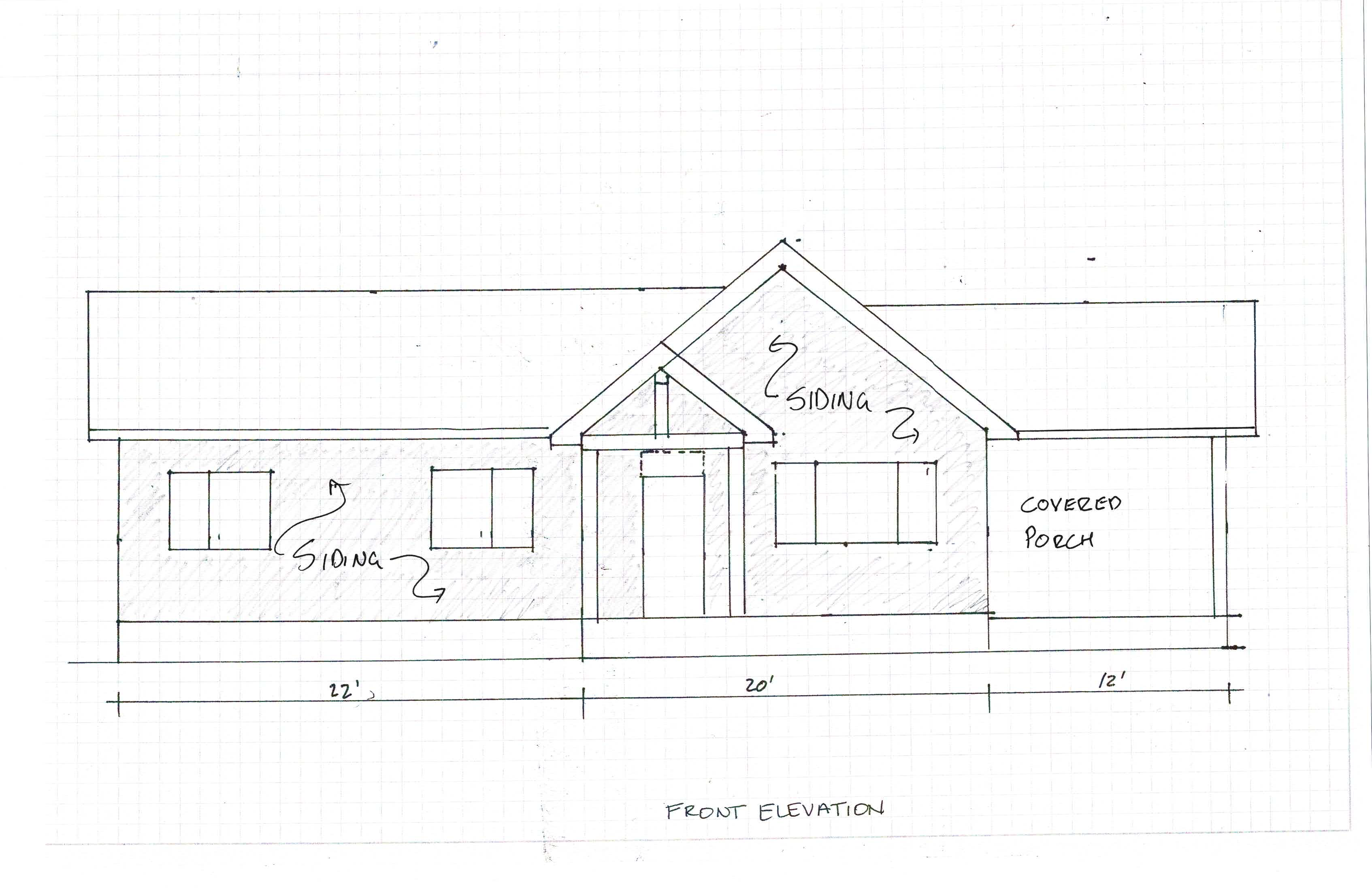create a 2d elevation image of the sketch use dark grey siding and black windows