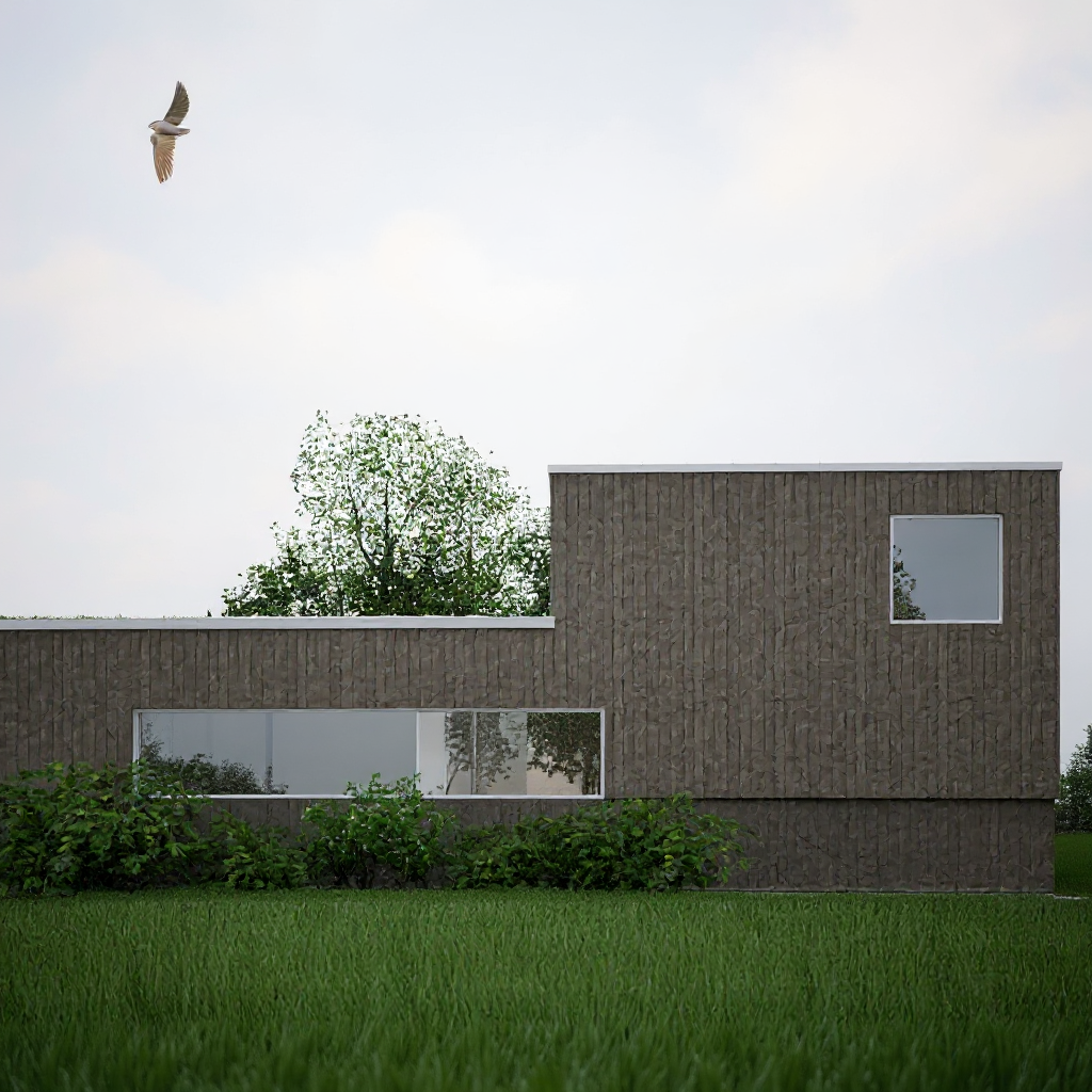 a modern laundry nook with open shelving made of warm natural wood matching the texture of the reference image the walls and floor are finished in smooth microcement microbeton creating a seamless minimalist surface integrated wooden slatted doors partially conceal a sleek black washer dryer unit soft ambient lighting neatly folded towels woven baskets and cleaning products on the shelves ultra realistic interior render high detail 8k photorealistic materials soft shadows natural color tones clean composition