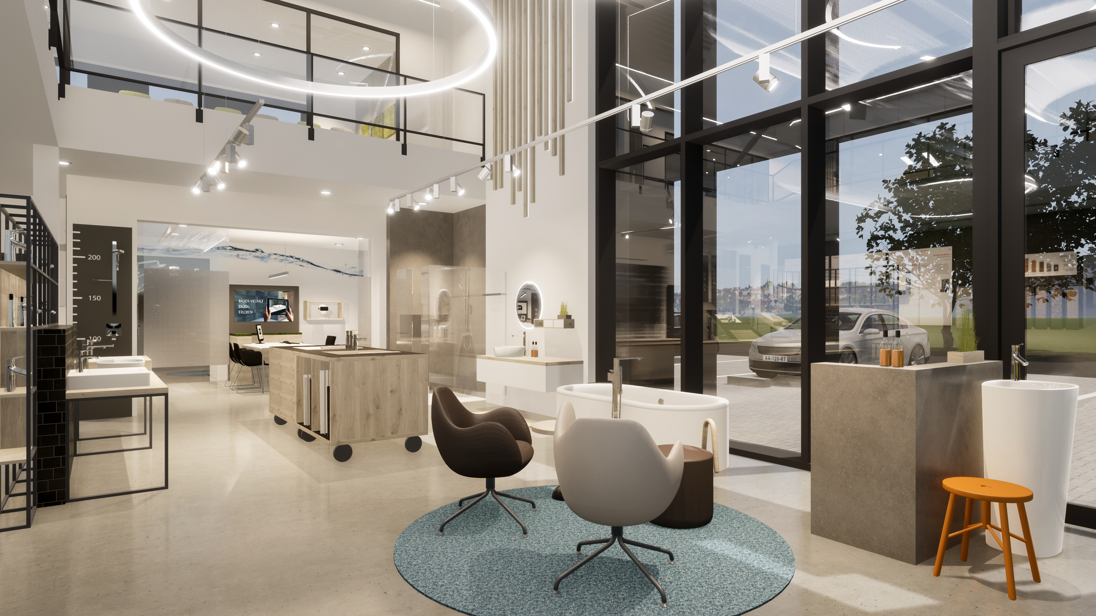 use the provided cad perspective strictly as the sole geometric and compositional reference preserve all elements exactly as given including proportions layout camera position field of view and object placement do not add remove reinterpret or redesign any architectural or interior elements no new objects furniture or light sources may be introduced under any circumstances all visible text within the image must be preserved exactly as shown do not alter reinterpret stylize translate or replace any text typography spelling layout and positioning must remain 100 identical to the original enhance the image exclusively through photorealistic rendering quality apply realistic materiality to all surfaces based on their implied function and construction maintaining the original design intent surfaces should exhibit subtle physical properties such as texture depth light absorption soft reflections and where appropriate controlled specular highlights or mirror effects avoid exaggerated or stylized materials aim for believable natural realism lighting introduce natural daylight entering the space in a plausible and context appropriate way the daylight should appear realistic and balanced without being limited to overcast conditions detect and utilize all light fixtures that are present in the original cad image these must visibly emit light and contribute to the overall illumination of the scene artificial lighting should produce realistic light falloff gentle highlights and nuanced shadow transitions do not add or invent any additional light sources beyond those already visible in the image the final image should read as a faithful photorealistic translation of the original cad perspective not as a reinterpretation in particular ensure that the characters and letters are rendered accurately in