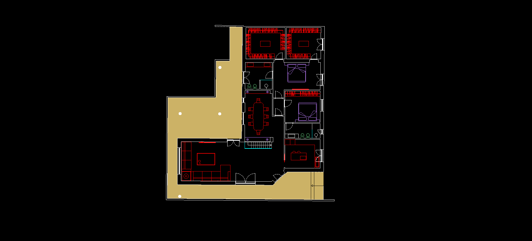 convert this floor plan into a realistic isometric 3d view of a full house show the space from an elevated angle with furniture walls and details visible usa colori tenui parquet naturale a spina francese travertino nei bagni e teak per il terrazzo esterno use the same furniture as shows on the plan do not change the orientation of the floorplan