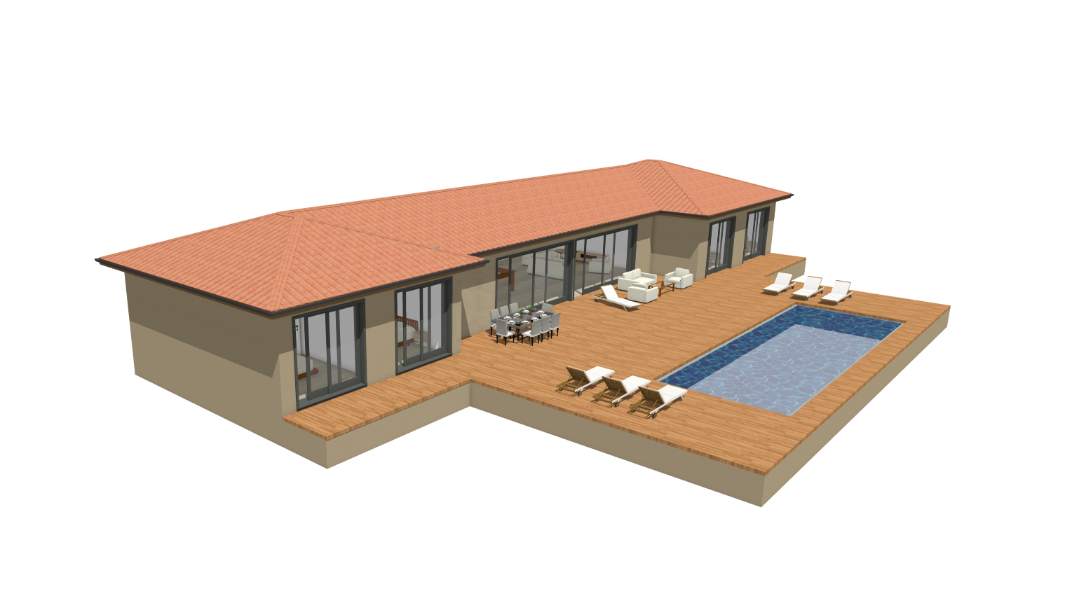 modernist exterior shot en tant qu expert en retouche d images je souhaite que vous rendiez cette image plus r aliste en conservant ses couleurs ses ouvertures et sans ajouter de fond l objectif est d obtenir une image claire de la maison sur un fond blanc avec les menuiseries en gris 7016 et la terrasse en lame de bois en maintenant l authenticit des l ments architecture