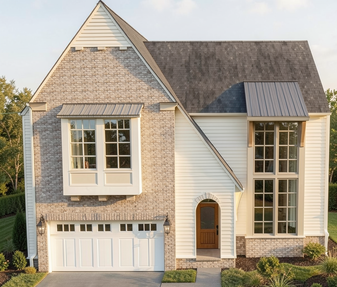 hardi siding is oyster white from sherwin williams the garage door is 887b67 window siding is hex code 887b67 keep brick consistent