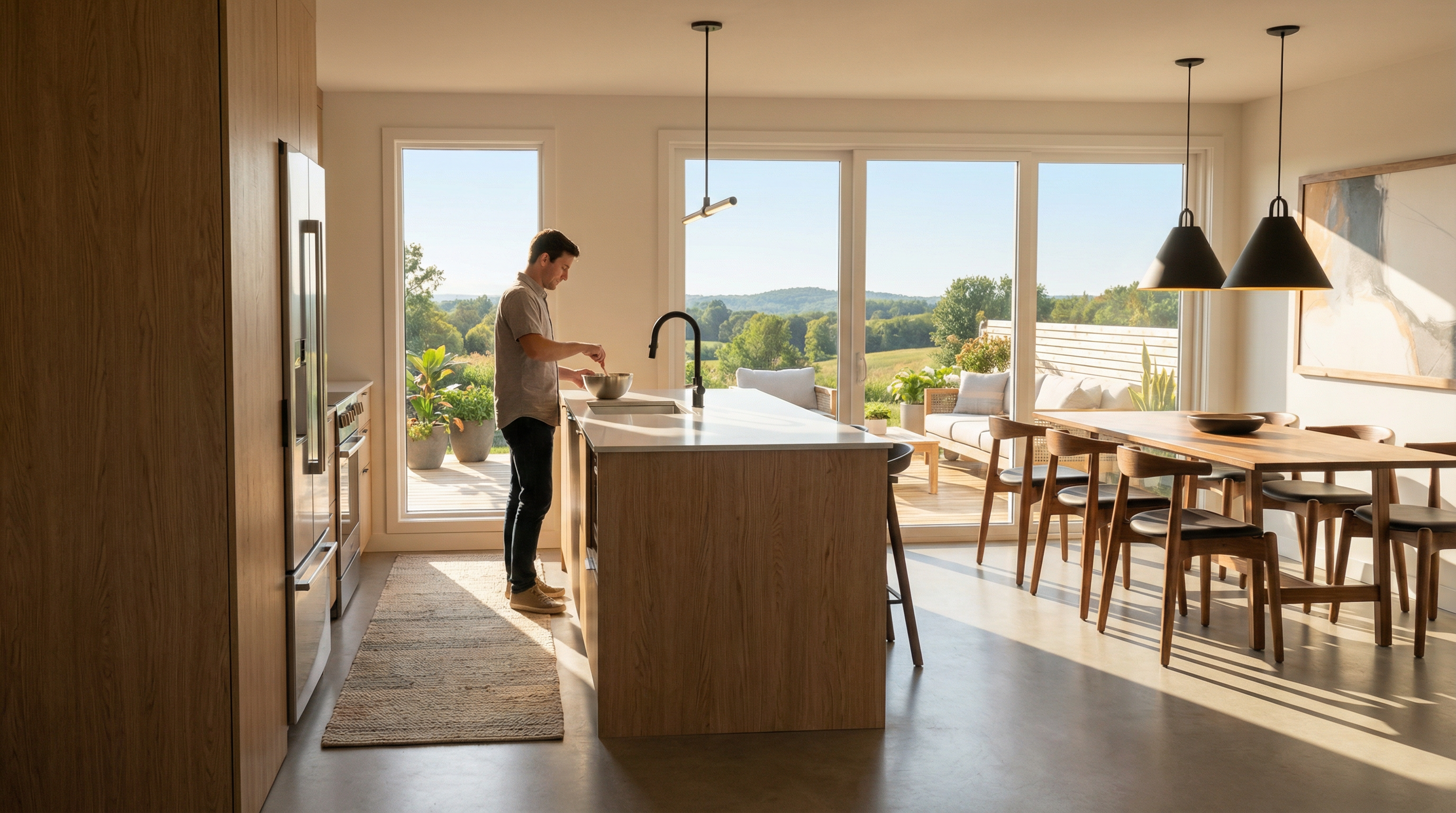 medium grey facade light up wein welt morandell asphalt window frame dark grey wine shop interior glass reflections and a vibrant clear sky with light atmospheric depth render in hyper realistic architectural visualization quality 8k resolution ligth up the entry