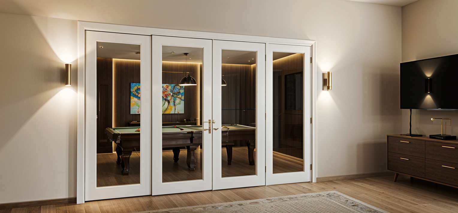 render it in white cabinet color add warm lighting inside glass cabinet flooring is light oak texture cabinet is all white no black shade
