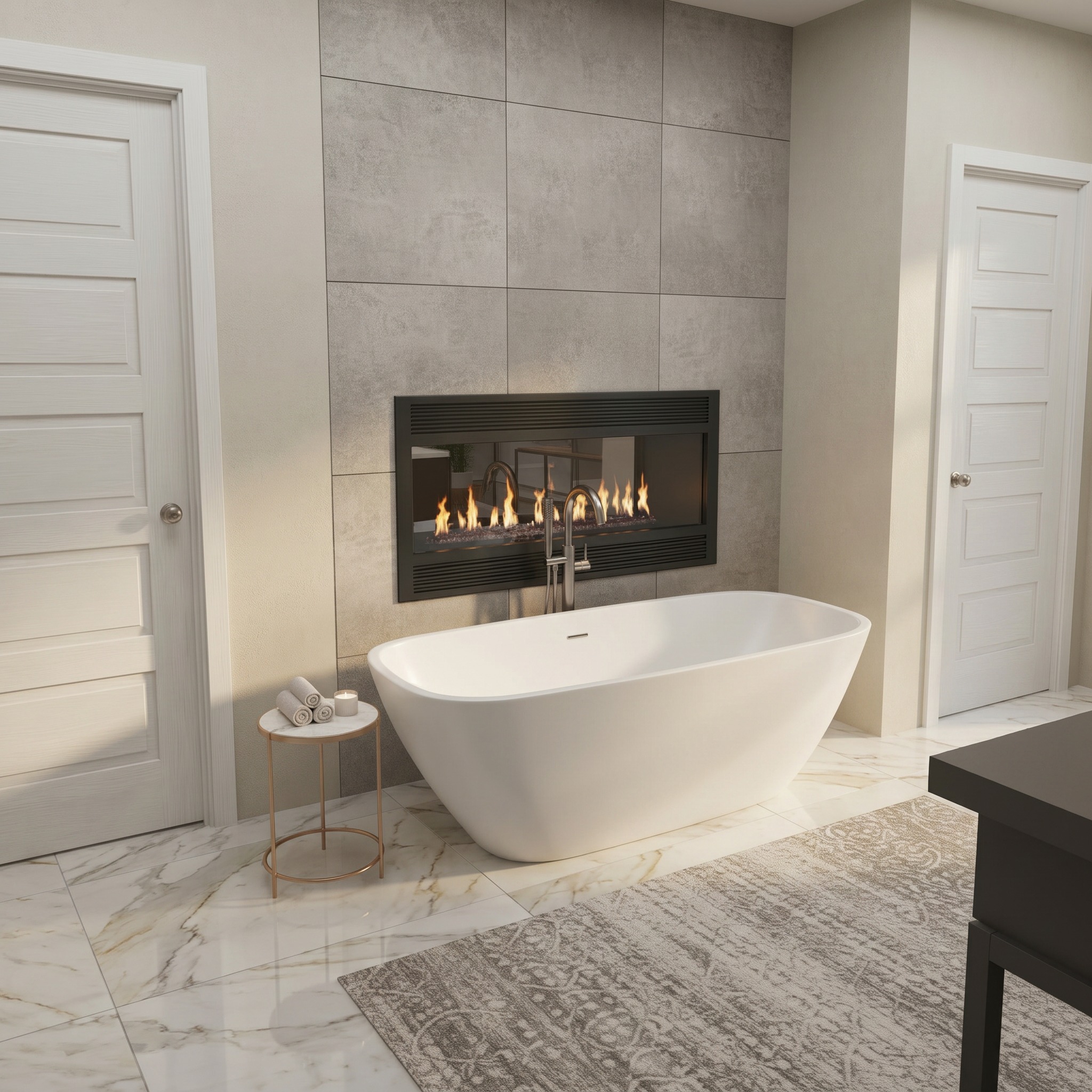 remove the rug and change the tile color to less brown and more of a gray vein