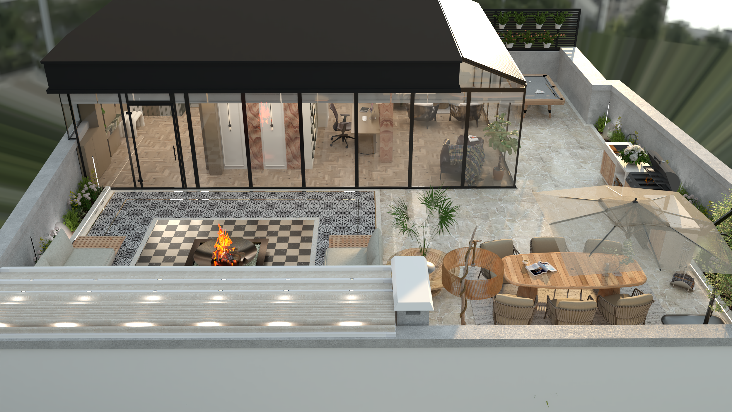 ultra realistic render preserve exact scene no changes add soft natural daylight realistic shadows and light falloff enhance clarity and materials background same but slightly blurred city top floor 10th floor no design or color changes