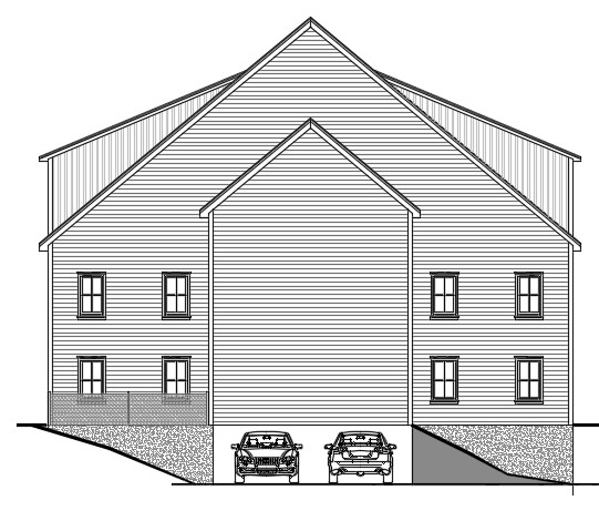 zaha hadid exterior shot create a real picture use blue grey horizonal siding with black framed windows use white board and batten on the shed dormers architecture