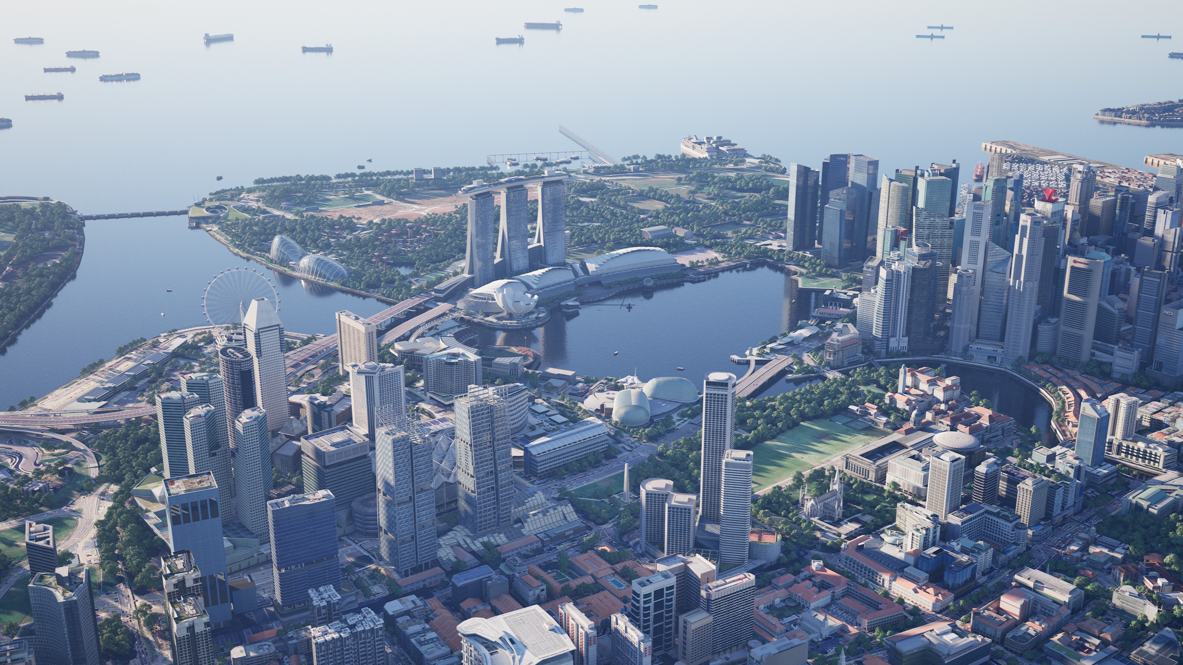 retain building design improve global illumination natural color enhance water body with subtle water wave amplitude dramatic water reflection photorealism