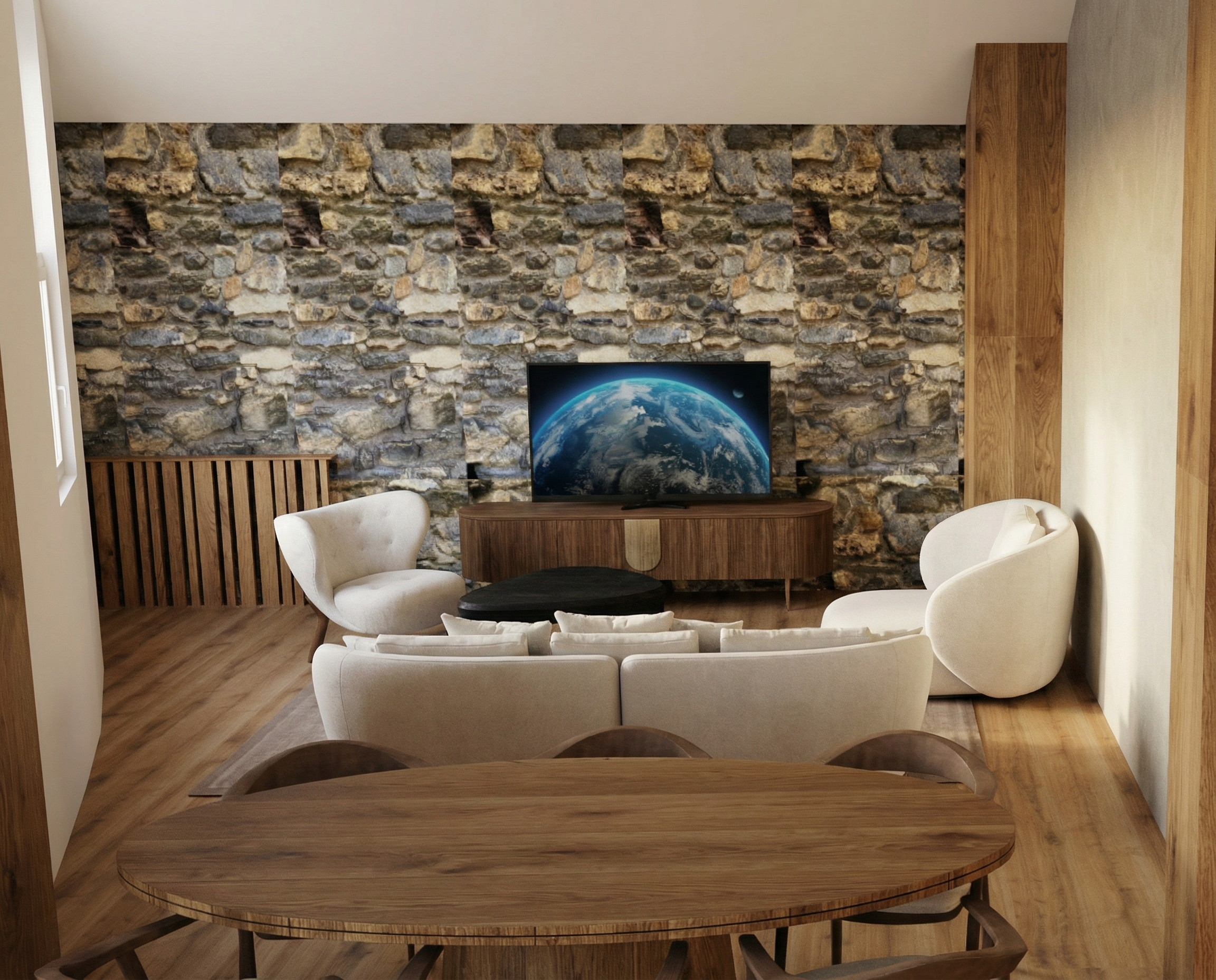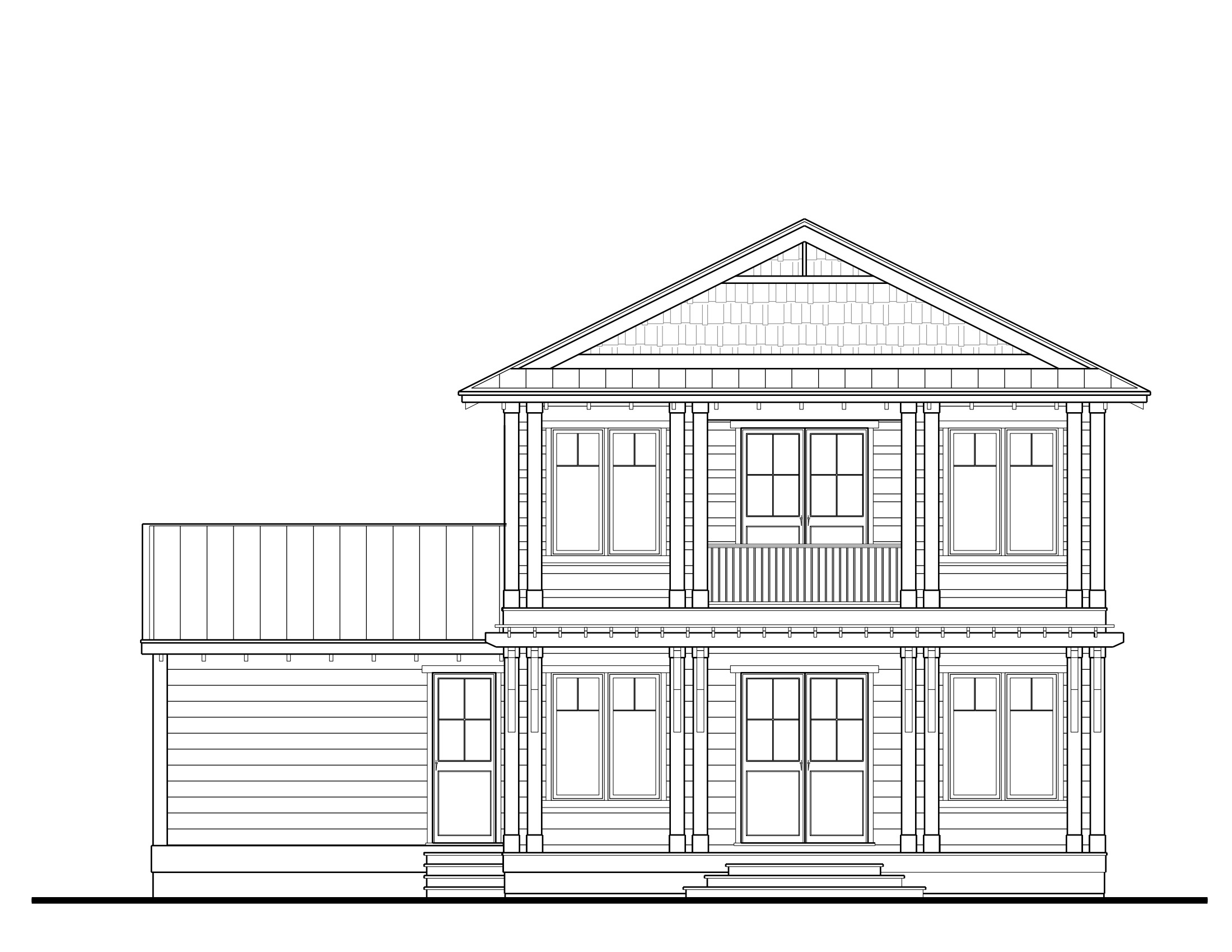 architectural style reference generate a rendering in a coastal southern vernacular style inspired by a gulf coast or low country home massing porch configuration include a full width ground floor porch with a second story porch directly above it use square columns to support both porches and maintain a vertical rhythm pergola trellis element add a horizontal decorative pergola band between the first and second floors this element should be a shading trellis that creates a strong shadow line and breaks up the vertical mass railing design use standard vertical spindles for the porch railings instead of an x braced pattern keep the look simple and traditional roof and dormers omit any dormers from the design the roof should remain a simple standing seam metal roof without additional upper elements siding trim details use horizontal lap siding in a light coastal color with contrasting white trim for window casings fascia soffits and porch beams clean transition at foundation ensure a clean transition from the foundation to the siding minimizing any visible freeze board to maintain a clean coastal appearance remove the 2nd floor railings on the right and left sides instead bring the exterior walls all the way to the front