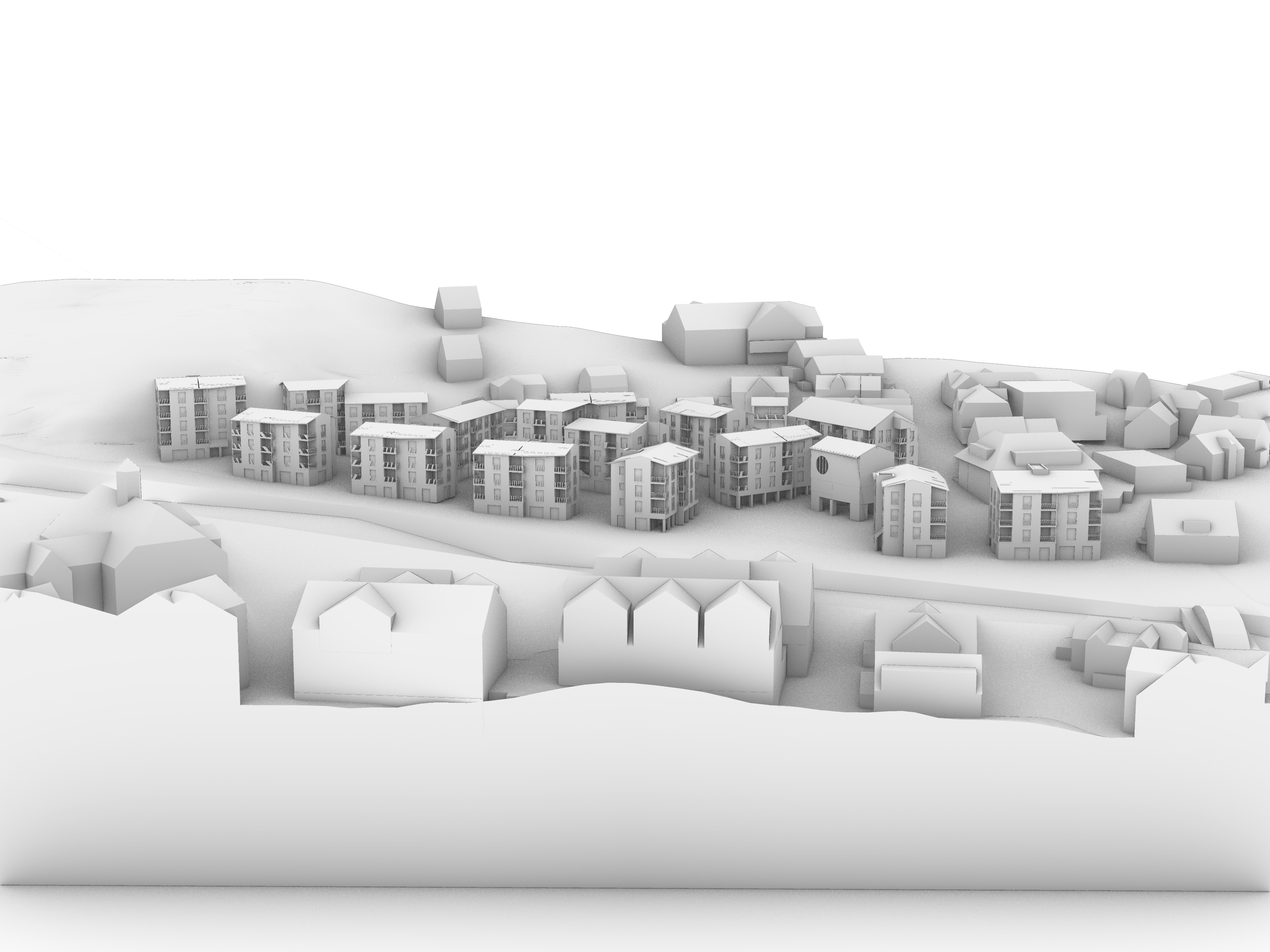 make it look like a white rough gypsum architectural model shot by 24 70mm f 2 8 lens in a black setting