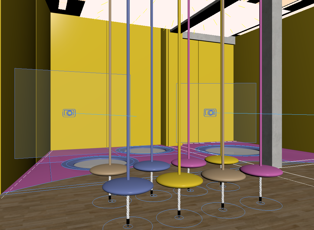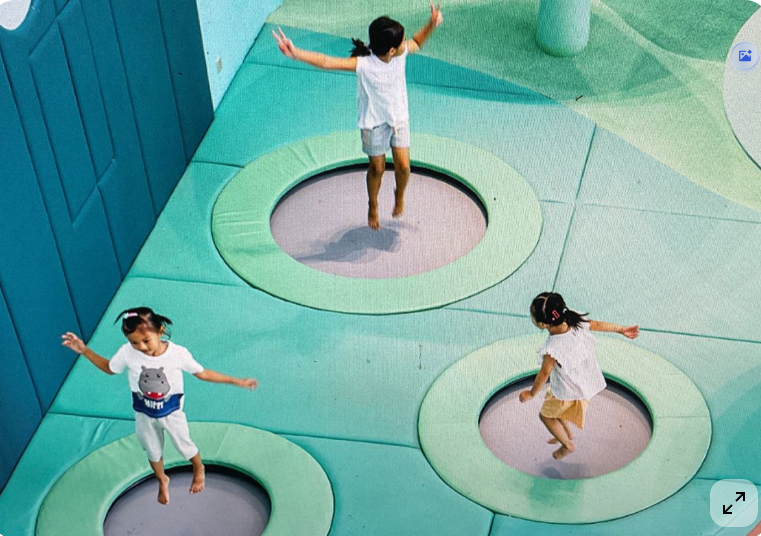 exterior shot a colorful and inviting children s playroom with a modern aesthetic the wooden play structure has a warm natural wood tone complemented by a bright yellow slide the swings have cheerful yellow seats the floor is a rich medium brown adding warmth to the room the tables and chairs are white with playful multicolored accents in shades of blue pink and purple the shelves are filled with colorful toys adding vibrant pops of red green and orange soft ambient lighting creates a cozy and welcoming atmosphere the room feels lively yet harmonious perfect for play and learning
