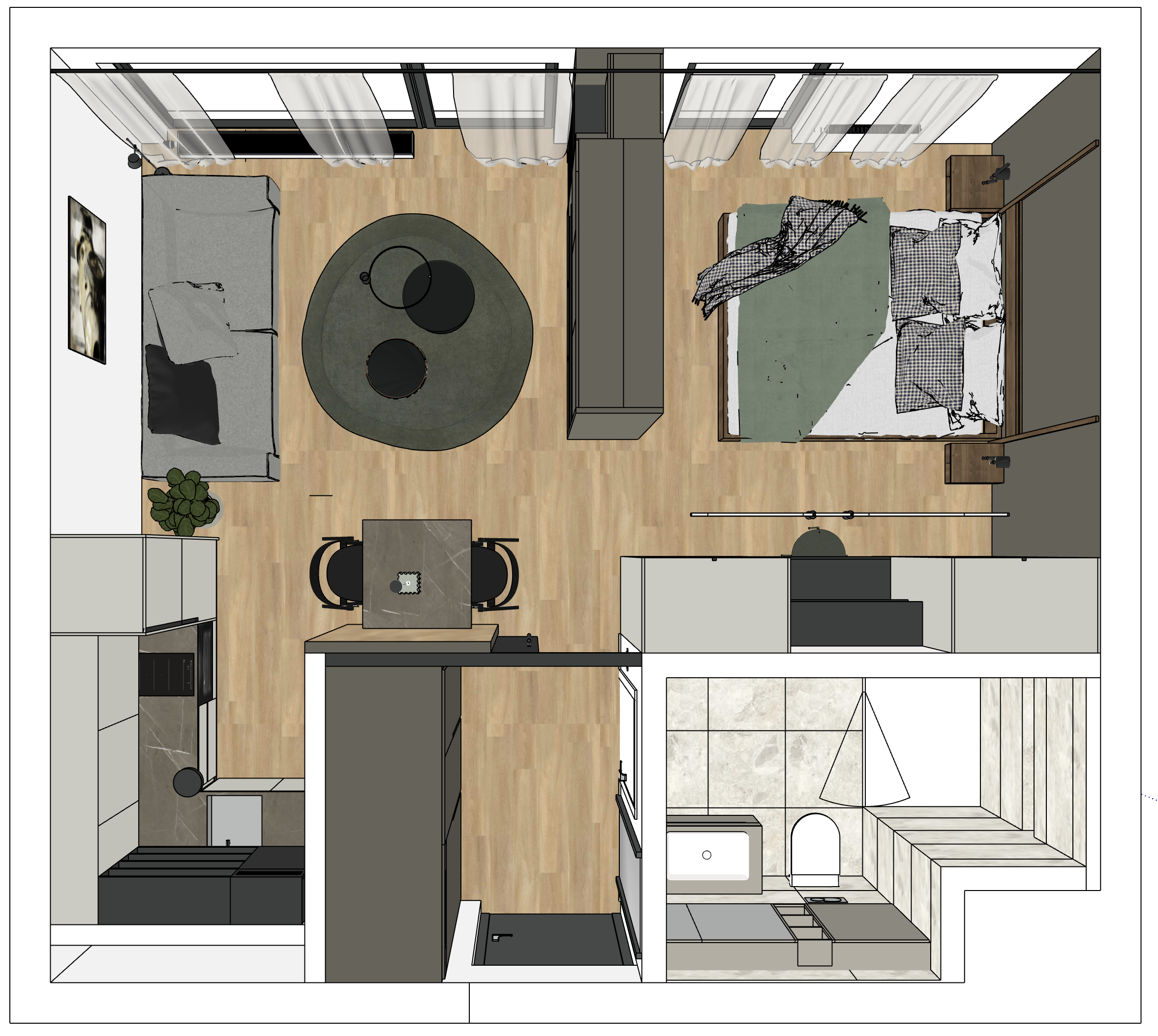 modern interior overview of the whole apartment no shadows