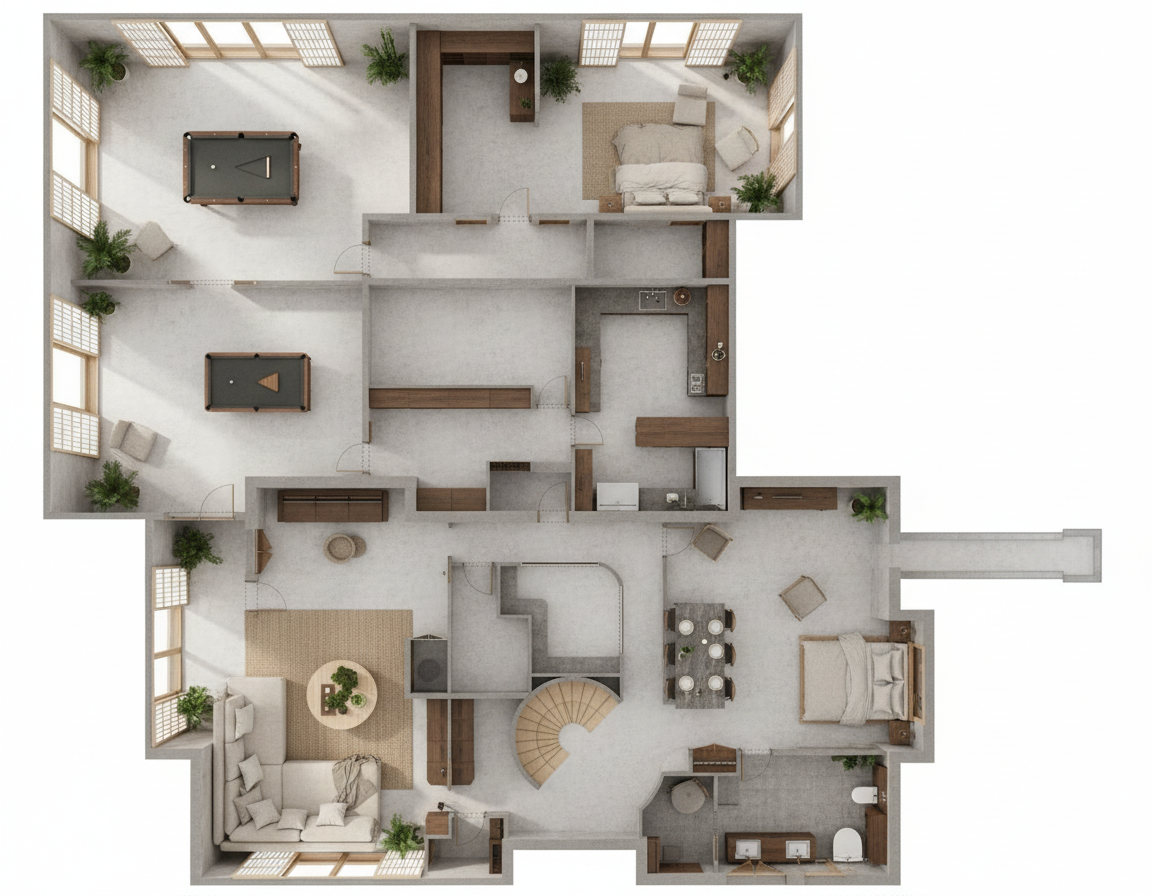 n o alteres absolutamente nada nos m veis na sua forma cor textura propor es ou posi o mant m todos os pormenores exatamente como est o altera apenas o tapete design textura e material garantindo que se integra harmoniosamente no espa o torna a imagem mais realista melhorando a ilumina o sombras reflexos texturas e profundidade sem modificar qualquer outro elemento da cena