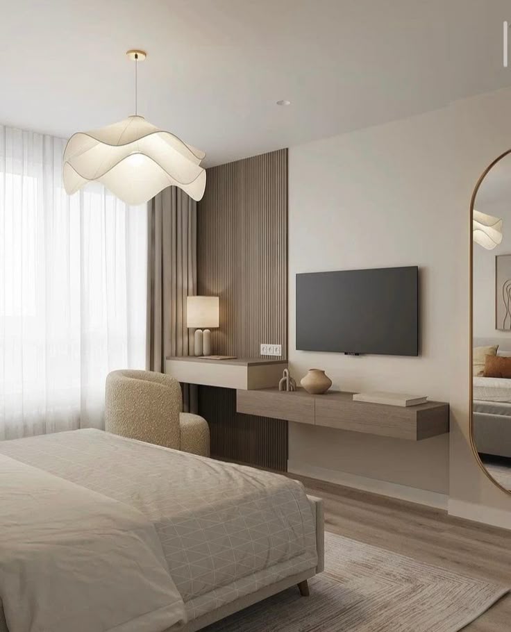 modern interior shot dark and light wood bedroom design brown color palette architecture