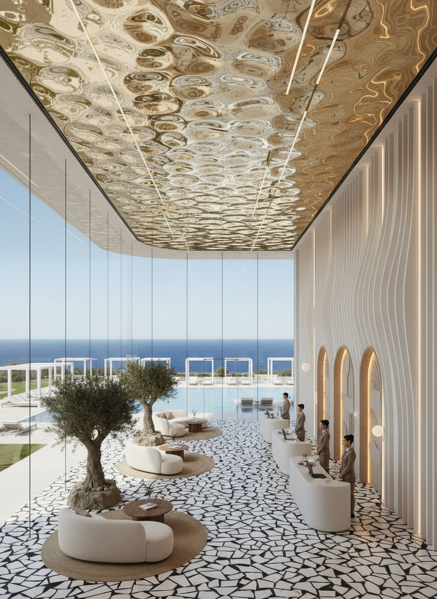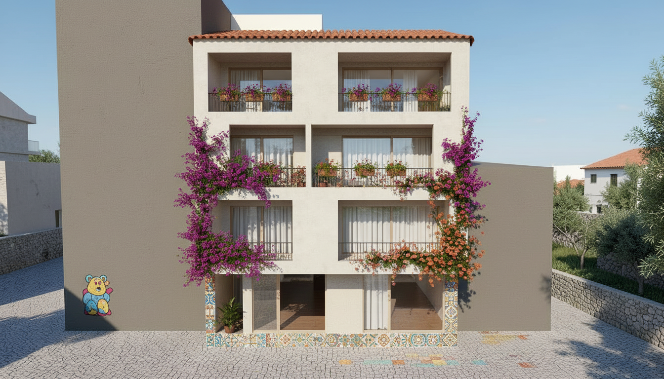 add and riggerated in the basic image in the same architecural misures analogical the most important elements of the referens image mood