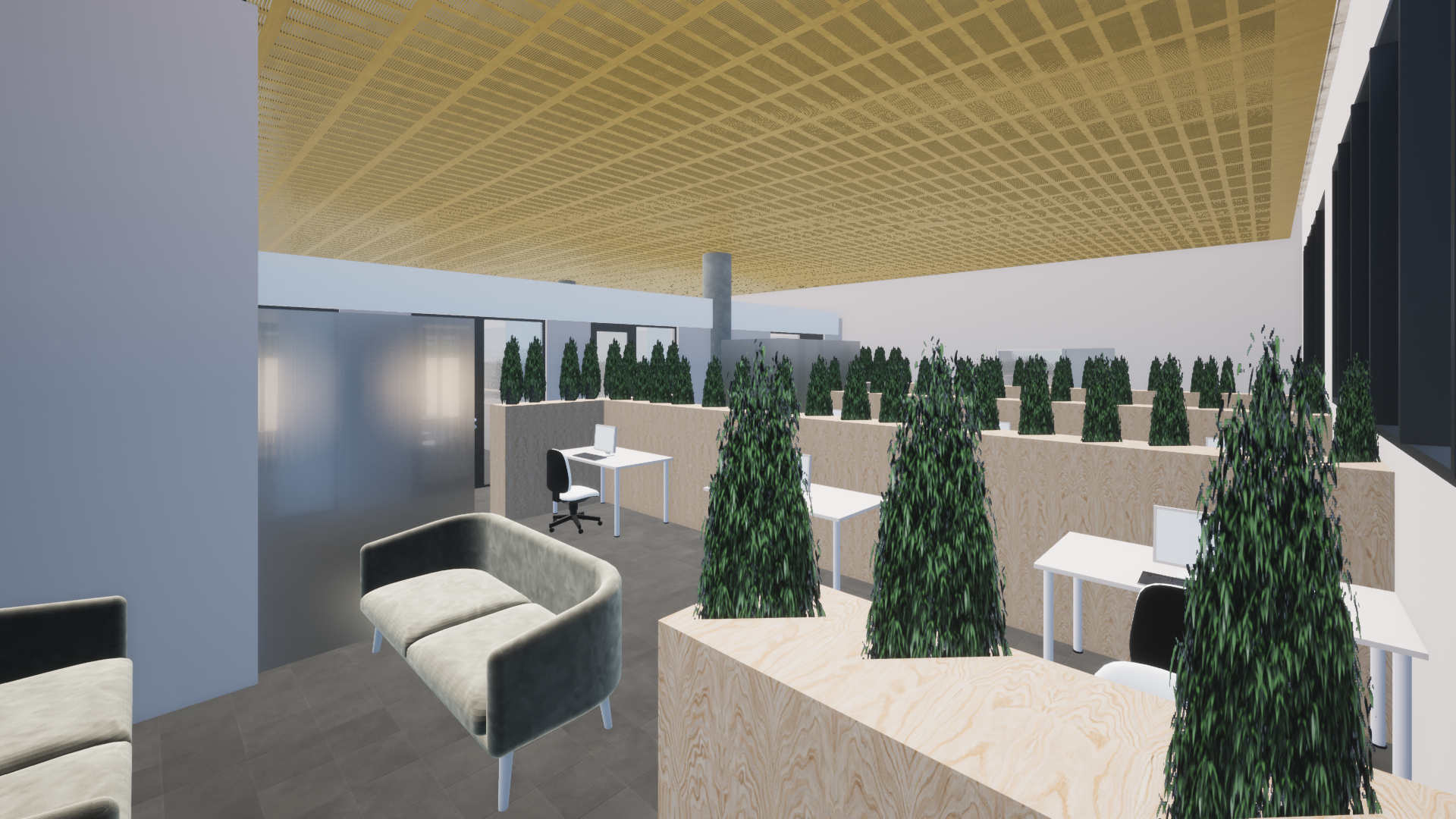 make this picture realistic use light oak on wood partitions make plants realistic but not to big