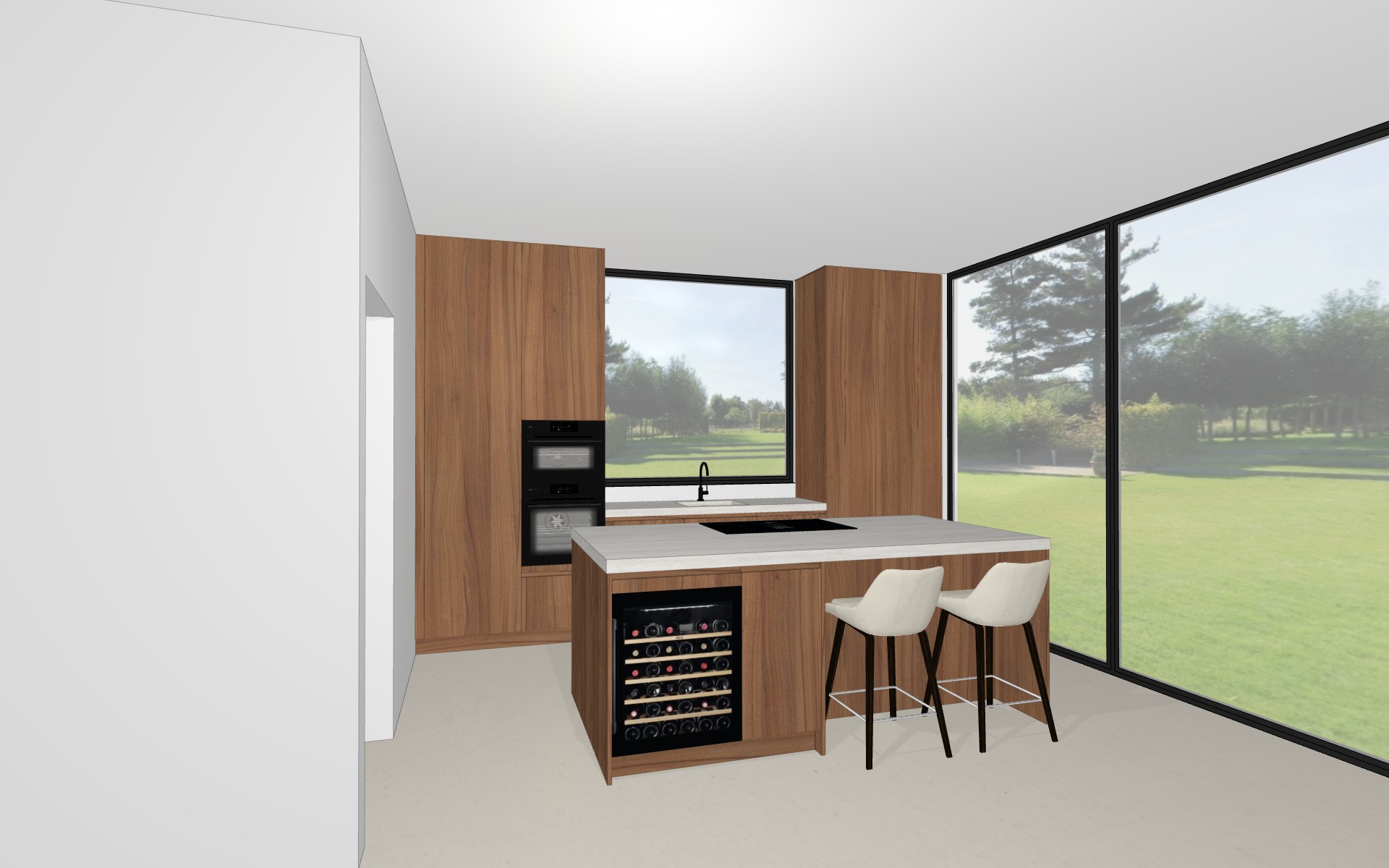 decorate this kitchen with a few elements keep the original colors and textures keep the tile floor the worktop is has a mat finish keep the original color time noon