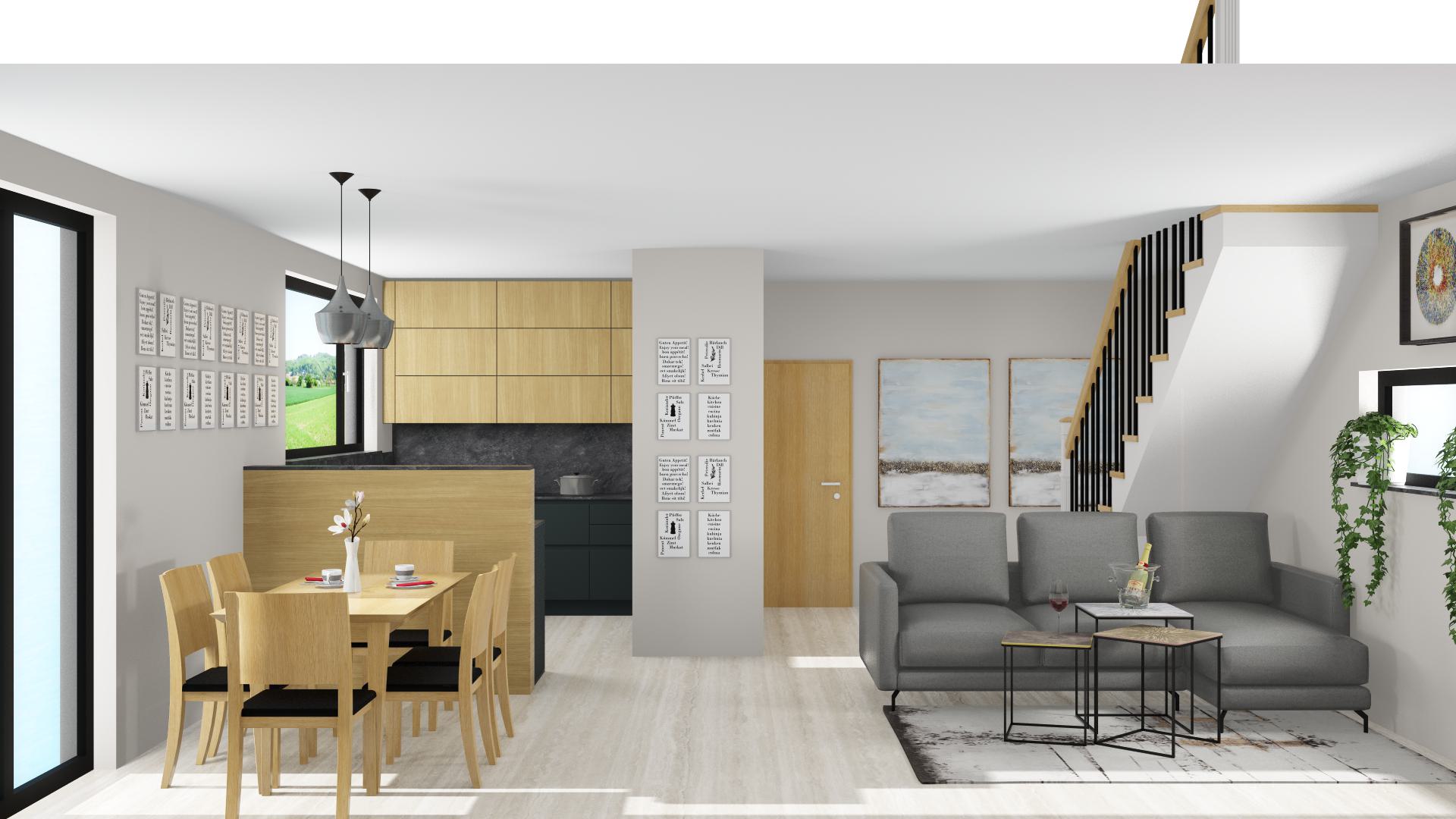 keep the colors and cabinet layout add decorations add a garden outside the windows