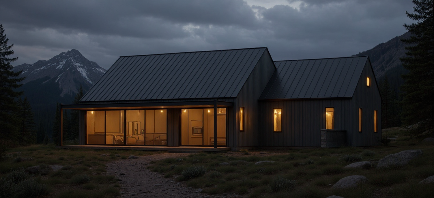 home in the colorado foothills with vertical grey wood siding dark metal roof