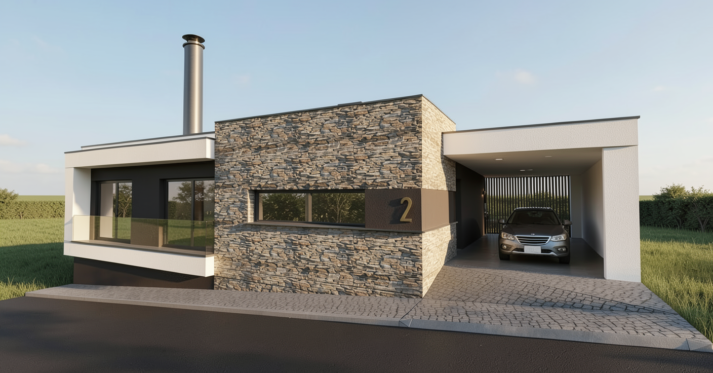 use the exact building geometry 3 storeys library from the provided elevation drawings 4 facades on sheet do not change proportions roof slope building footprint height or window and glazing positions do not redesign or reinterpret the architecture no new volumes no additional buildings no shape modification no people architecture style contemporary scandinavian elegant minimal warm but expressive facade refinement natural vertical timber cladding light oak thermowood tone dark matte standing seam metal roof anthracite slender light concrete or white columns refined dark metal window frames deeper window reveals for shadow depth clean minimal concrete plinthenvironment pine forest surroundings wet reflective pavement blue hour winter atmosphere soft fog in background people walking naturally warm interior glow contrasting cool forest tones cinematic architectural competition render high realism volumetric light soft shadows