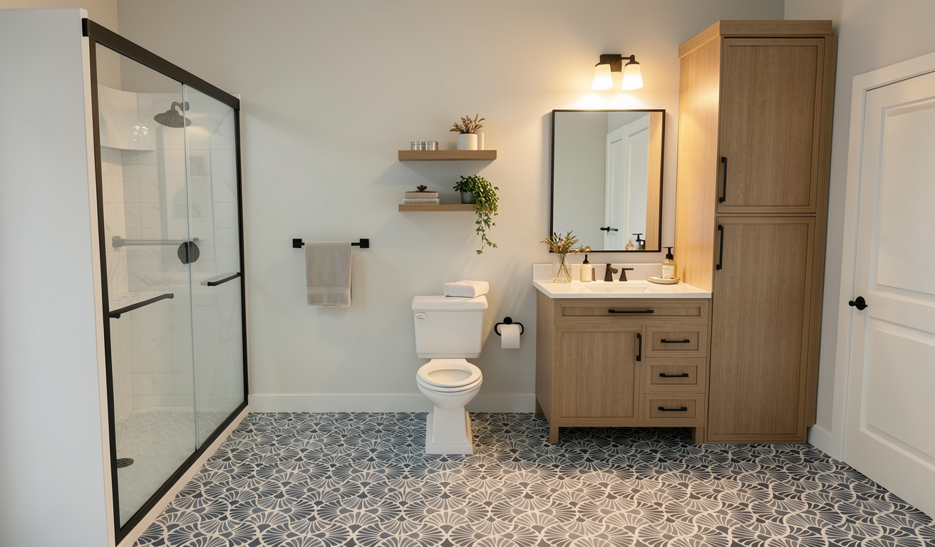 accessorize this bathroom without any plants or greenery or flowers no plants dont change any finishes