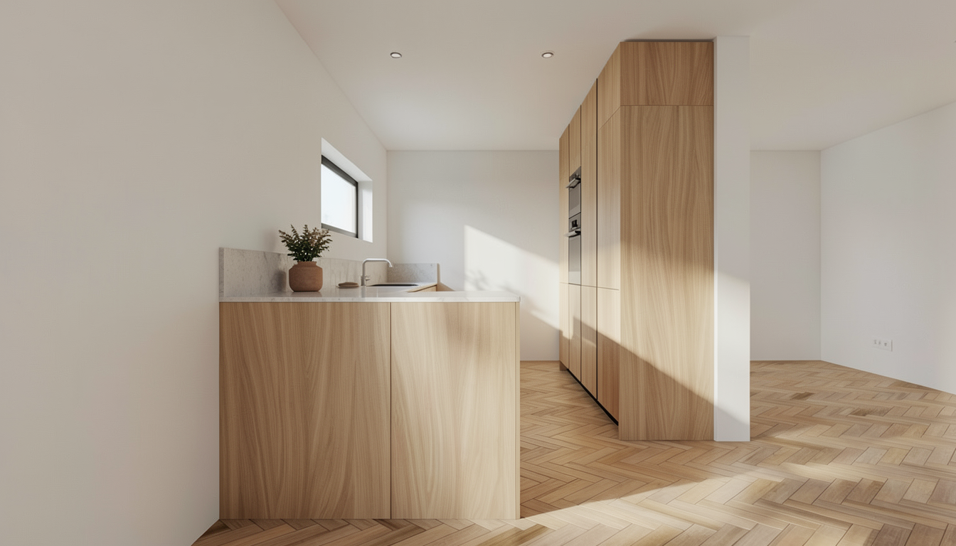 modern kitchen minimalist seamless light oak texture very nice accesories