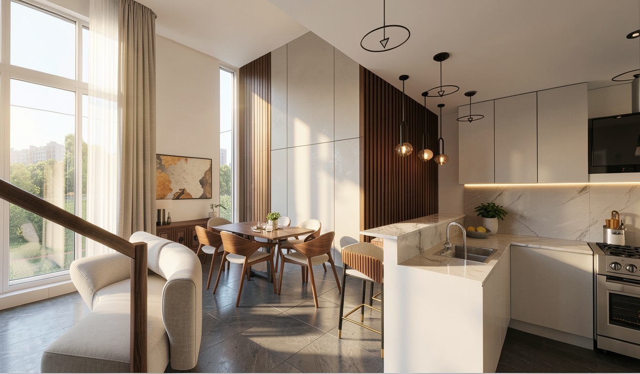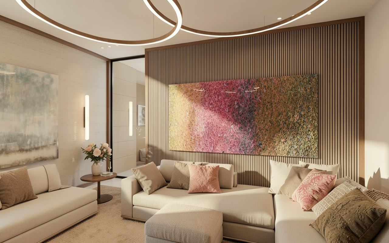 all frames above bar table empty add more do not change chandeliers keep wall at end light capuccino paint keep bar table light capuccino