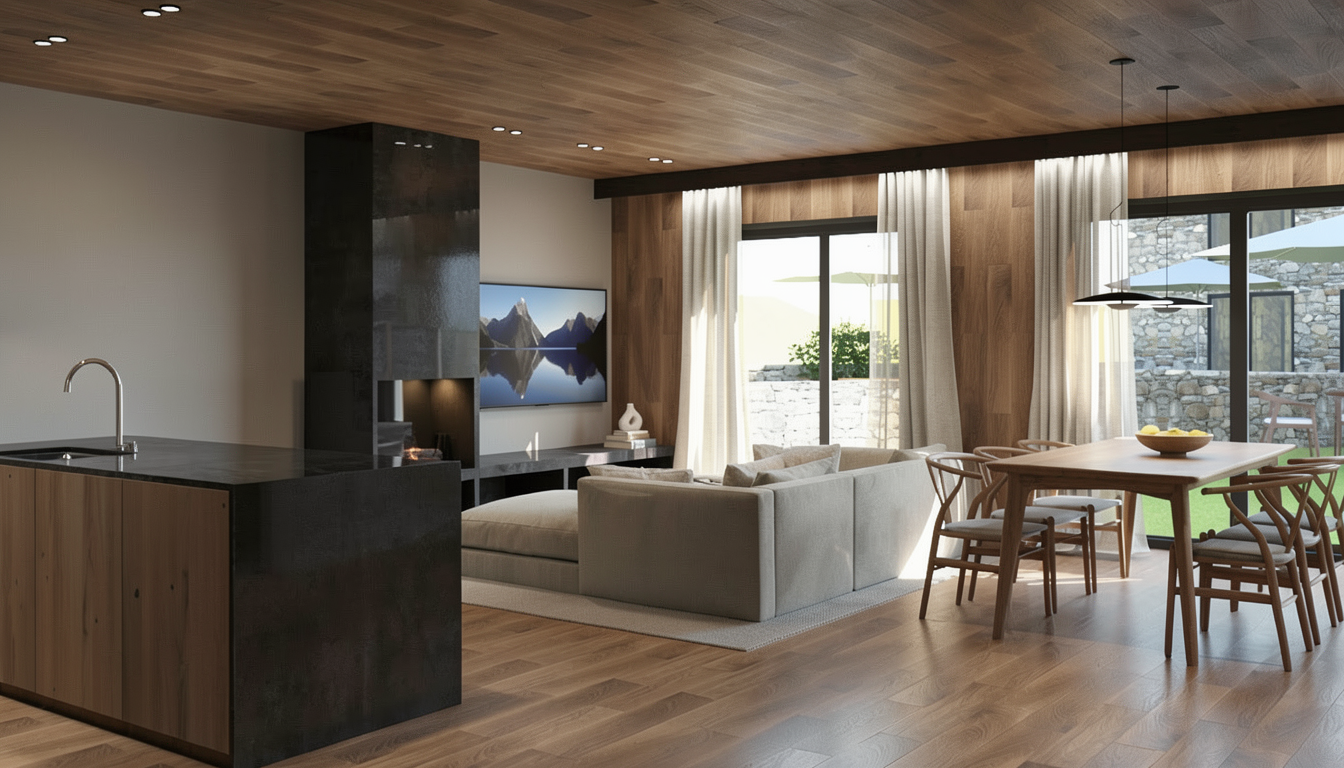 add natural lighting make look realistic add surrounding trees and minimal landscaping create an outdoor kitchen in the corner of the deck that is covered put furniture onto the decks