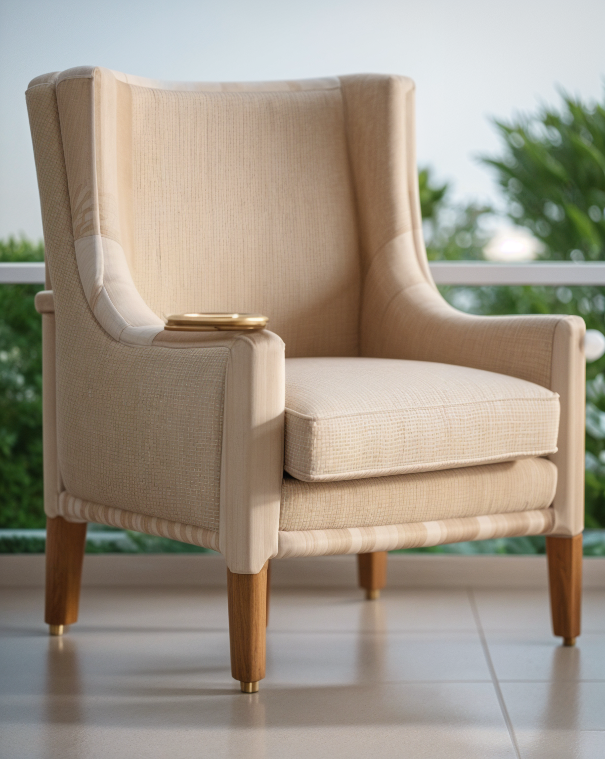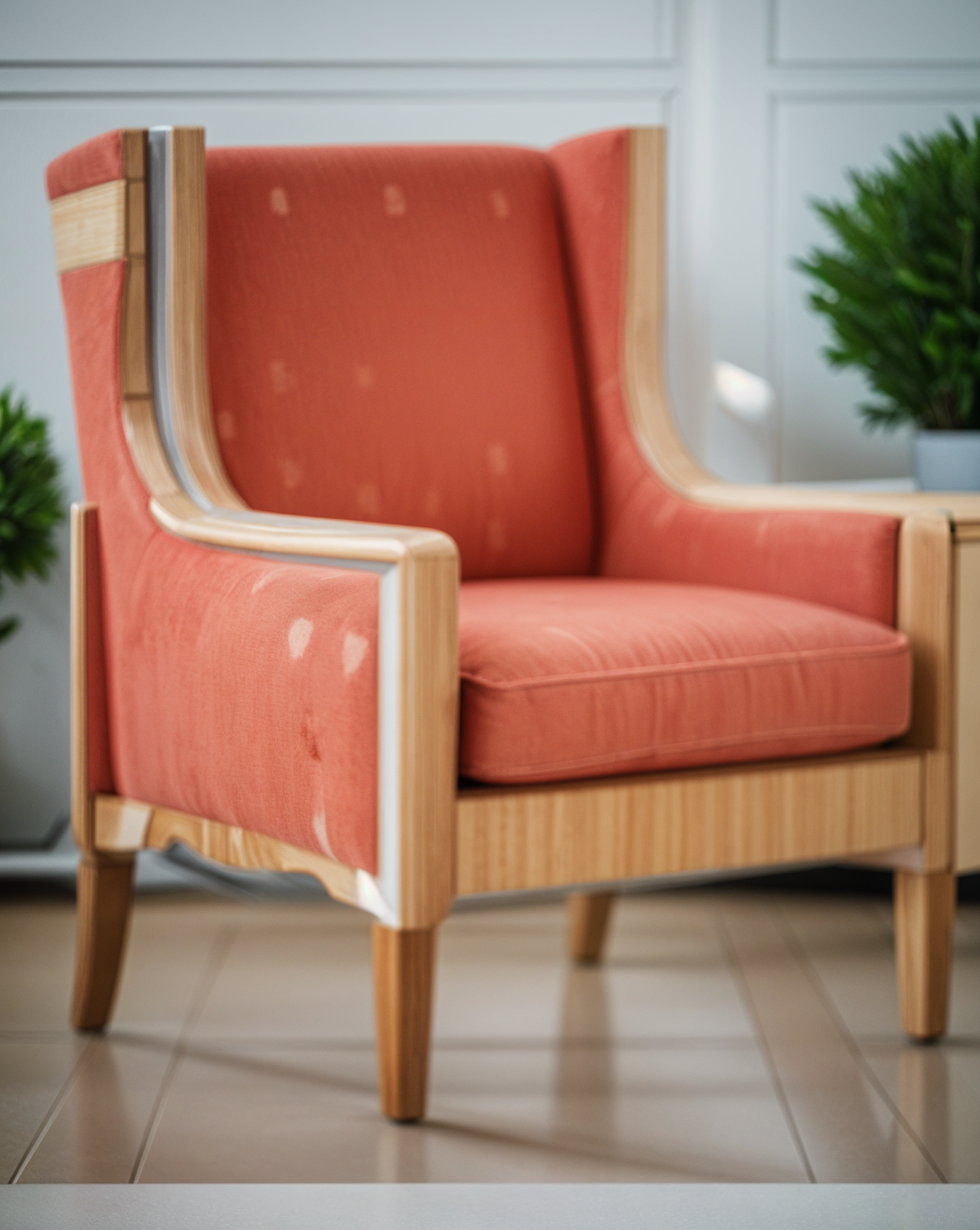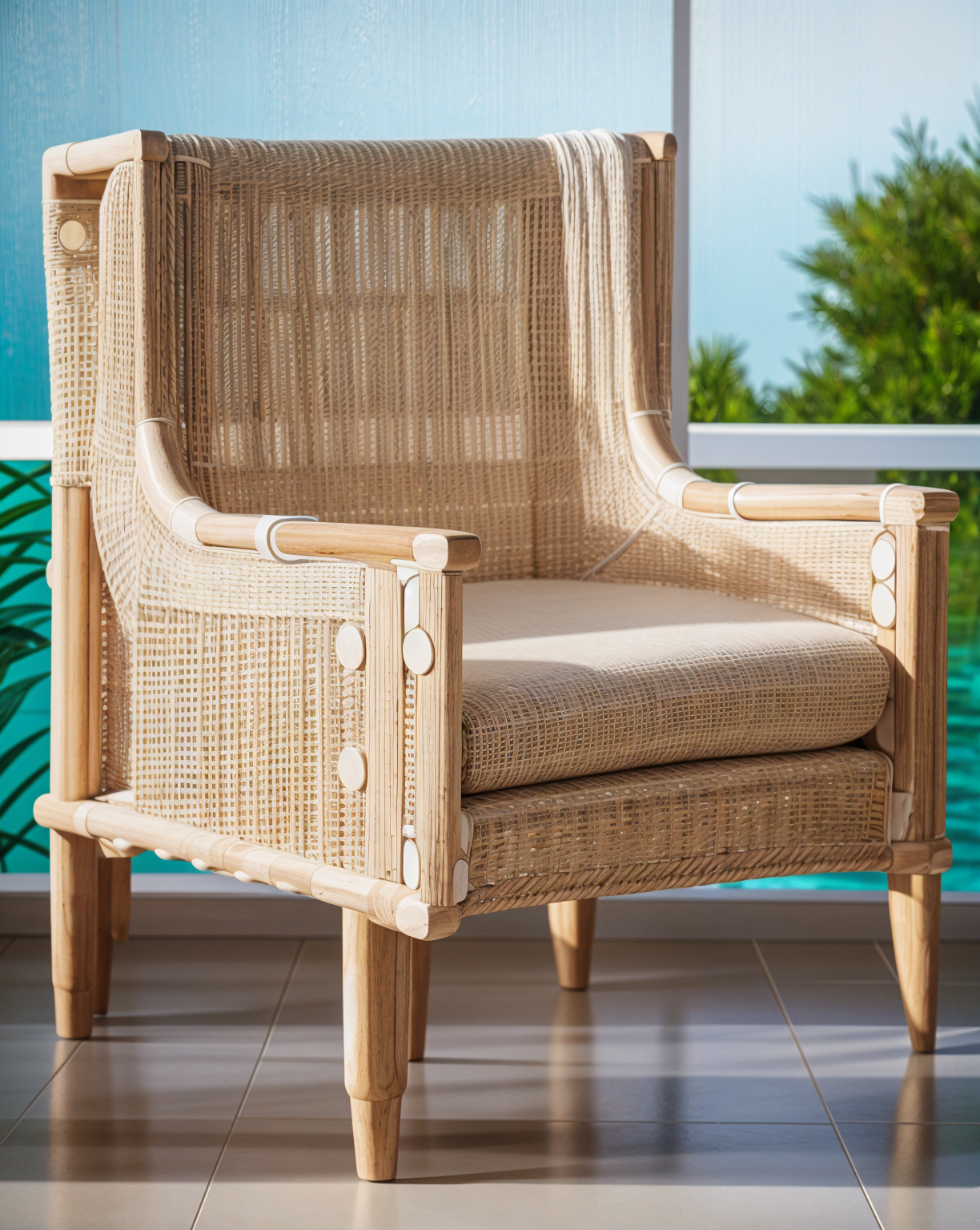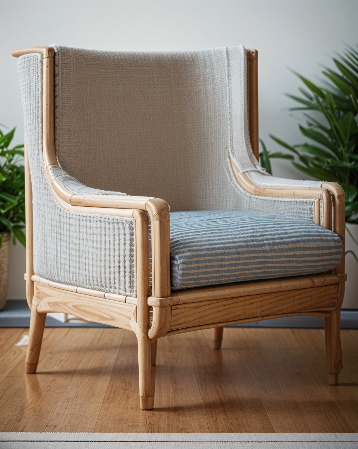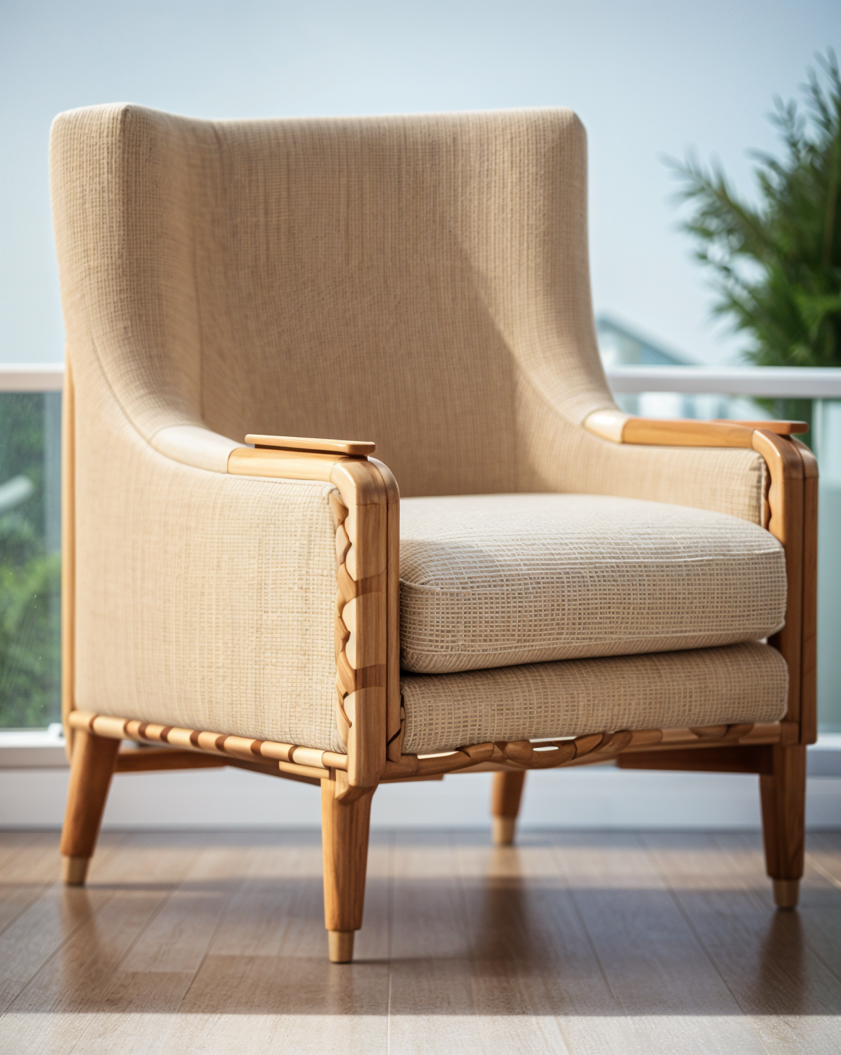 modernist perspective shot weaving inspired chair wooden legs finish architecture