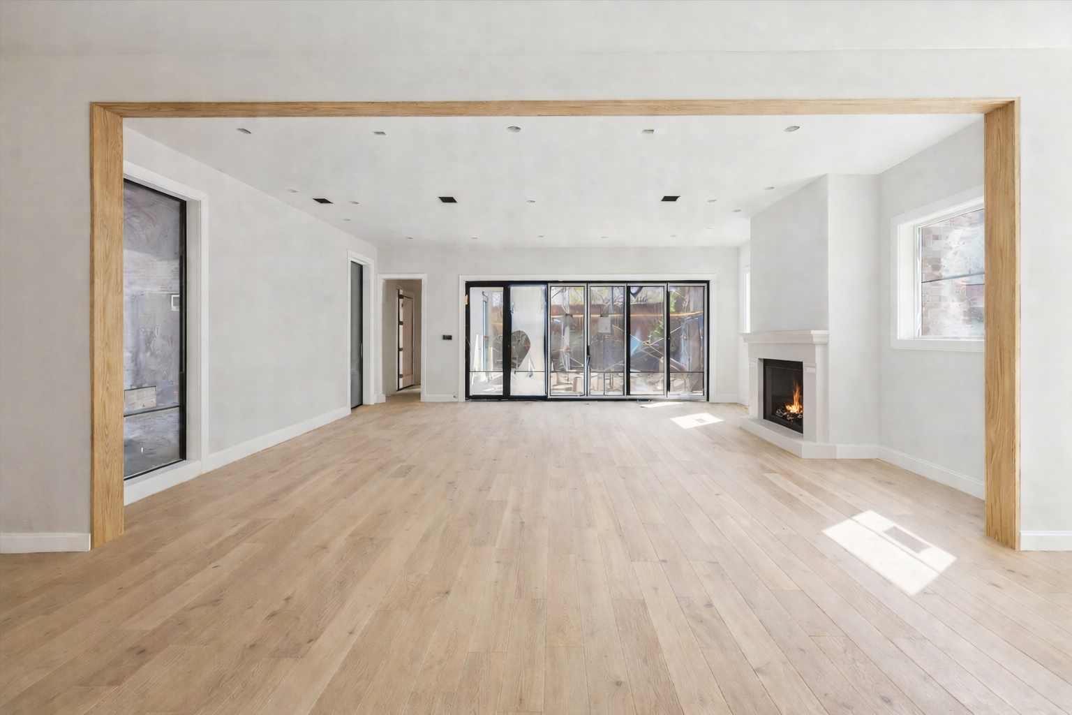 preserve the architecture layout lighting and camera angle of the original rendering exactly do not modify walls windows ceilings cabinetry flooring or built in elements replace placeholder furniture with pieces inspired by restoration hardware and minotti design language design style quiet luxury interior combining restoration hardware scale and warmth with minotti s sculptural modern silhouettes the space should feel calm architectural and curated furniture characteristics low profile furniture with substantial proportions sculptural forms soft rounded edges and thick upholstered volumes materials boucl upholstery performance linen suede honed marble travertine wire brushed oak warm walnut and brushed bronze or brass accents color palette warm neutral tones including ivory cream sand taupe soft greige and natural wood tones furniture arrangement balanced and architectural composition with generous spacing pieces should feel substantial and grounded lighting soft natural daylight combined with warm indirect lighting 3000k subtle shadows and natural light falloff rendering quality ultra photorealistic architectural photography style 35mm lens balanced exposure realistic textures subtle imperfections and natural reflections the final image should resemble a luxury interior photographed for architectural digest or a high end real estate marketing campaign furniture should not cross teh cased opening