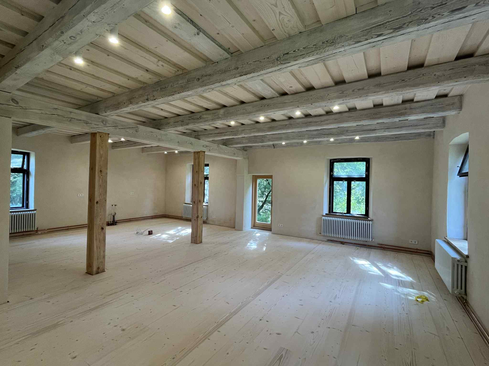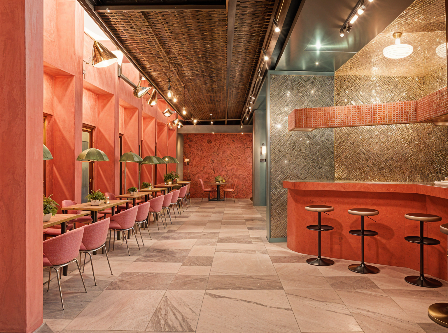 minimalism interior shot add boho style interior with sofa in first part in room and kitchen with island in left corner architecture