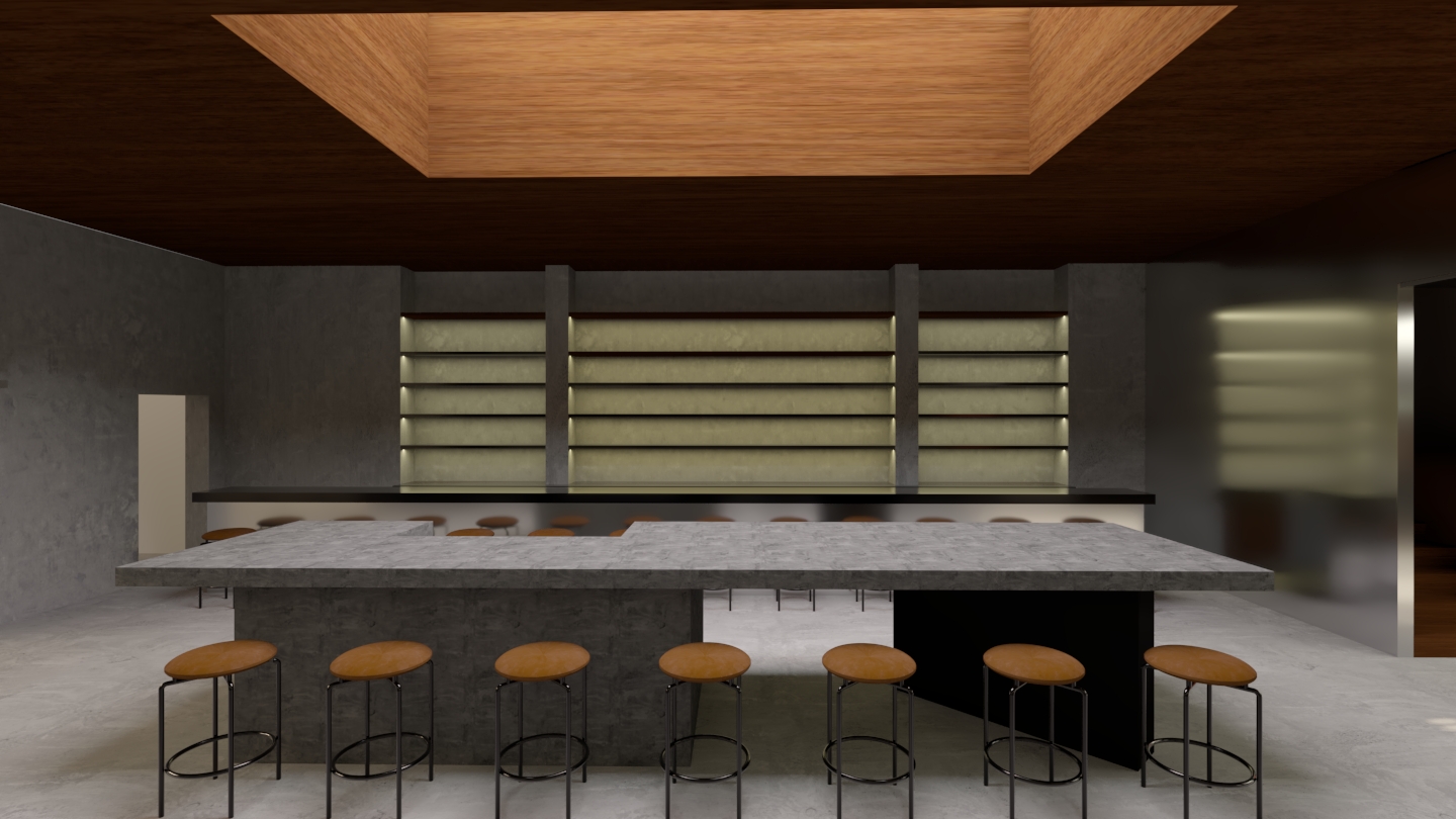 add alcohol bottles only on the shelves on the back keep everything else as it is architecture