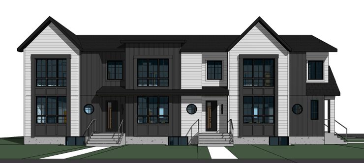 put these townhomes in a nice neighborhood add 2 small trees make the white siding smooth