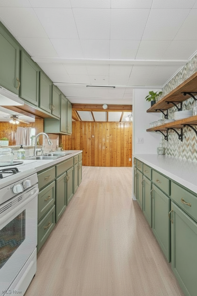 remove the decorative black metal that is supporting the wood shelves on the right