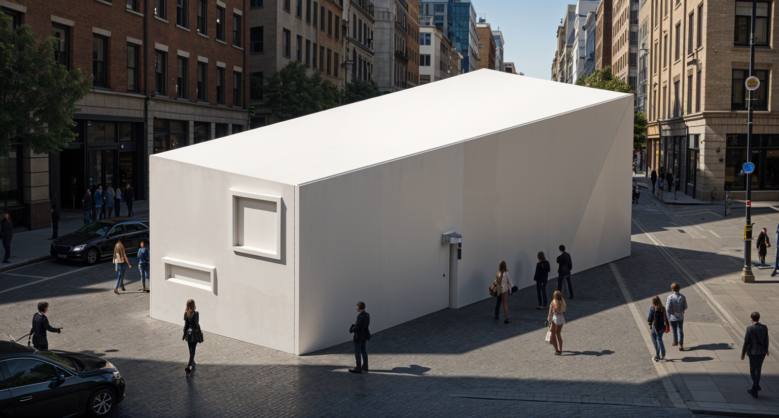 exterior modern detailed building render keep the same facade bumps all the way through like in the 3d model and in the middle of the city with people walking around it